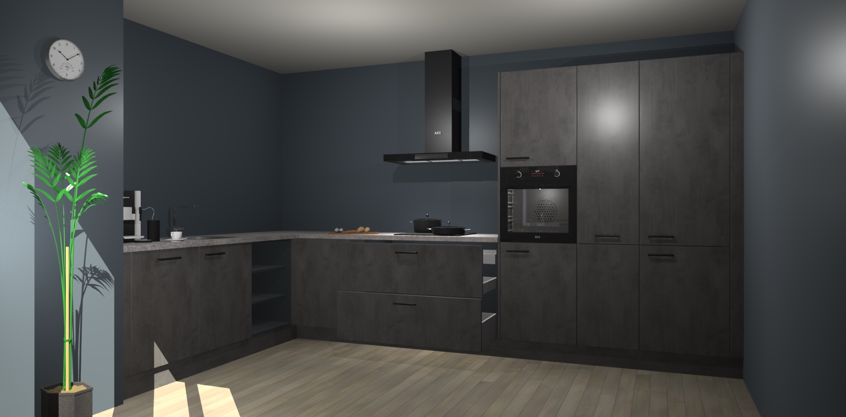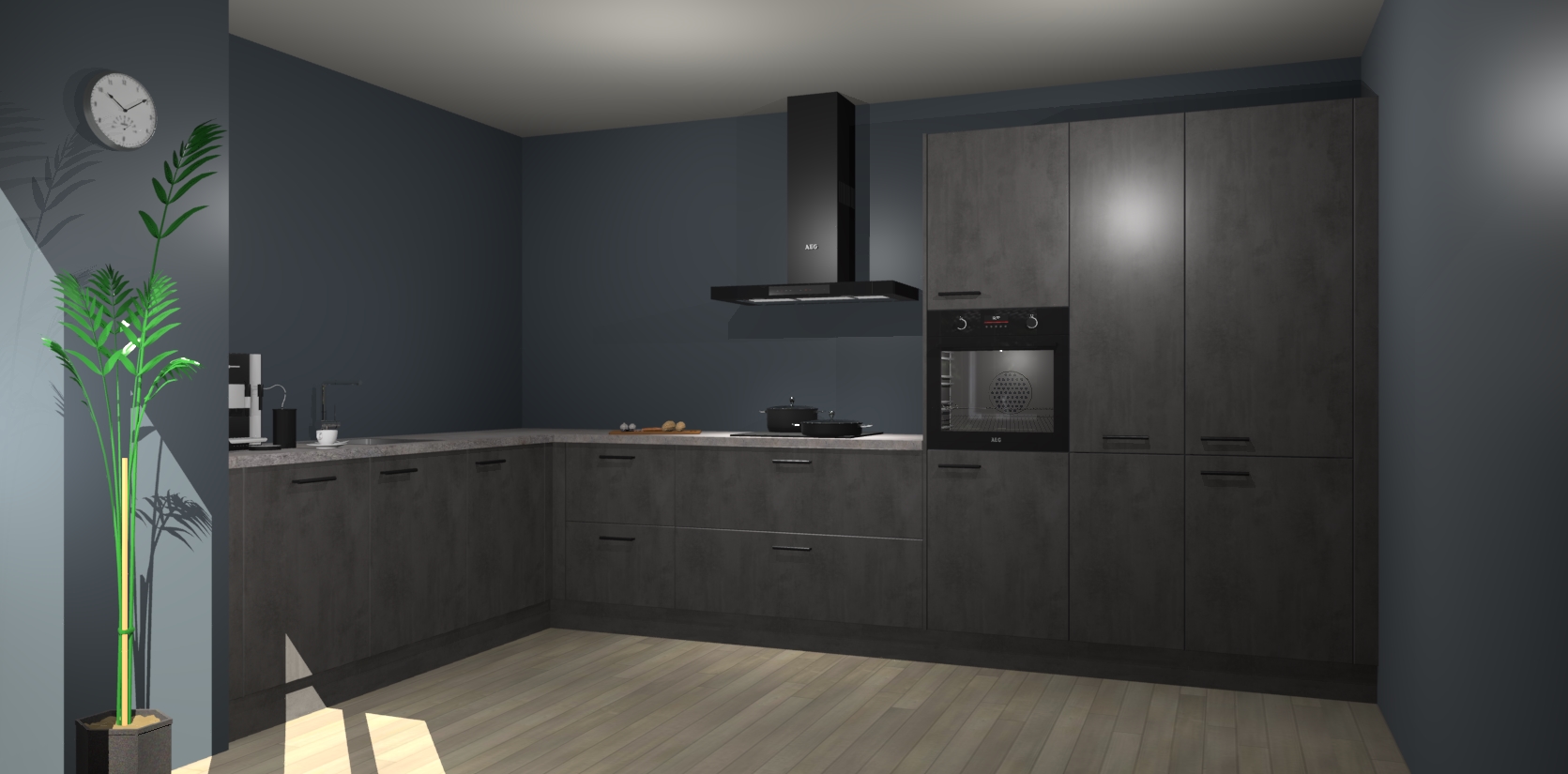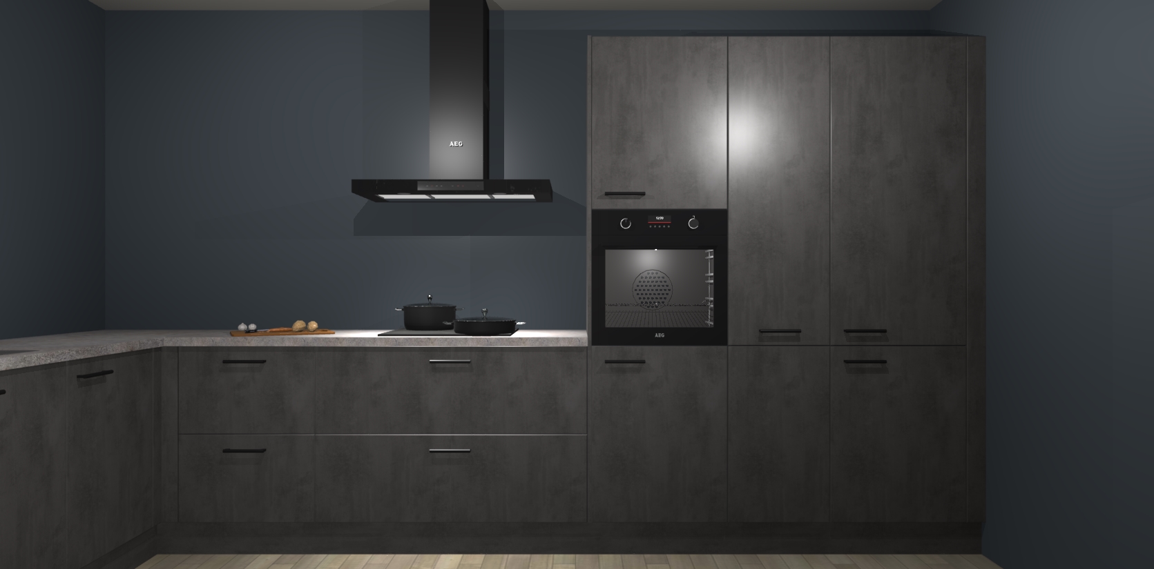 Welkom bij de beton antraciet keuken Nuuk. Deze prachtige keuken zal de komende jaren het middelpunt van de belangstelling in uw huis zijn. Uitgerust met vijf inbouwapparaten komt u nooit kookgereedschap tekort.