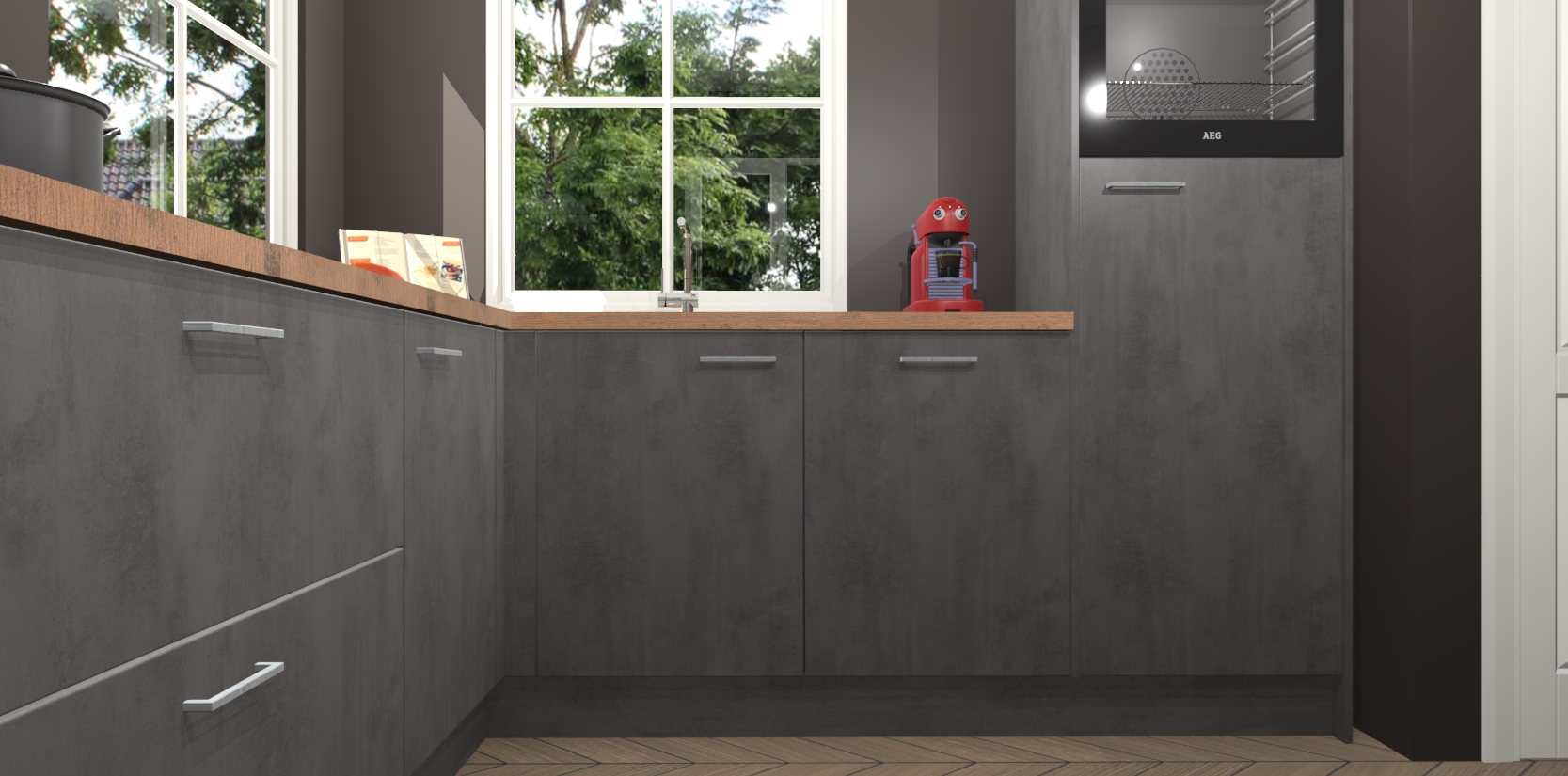 De Beton Antraciet keuken Pai bevat vijf essentiële inbouwapparaten - een oven, inductiekookplaat, afzuigkap, vaatwasser en koelkast - zodat u er na levering meteen in kunt. Voor de slimme kopers die weten dat apparaten vaak het verschil kunnen maken tussen functioneel en luxueus, bieden we eenvoudige upgradeopties naar AEG, van oven naar combimagnetron na bestelling of naar een kookplaat met geïntrigeerde afzuiging. En met onze vaste lage prijs en snelle levering binnen zeven weken vanaf de orderbevestiging hoeft u zich geen zorgen te maken over verborgen kosten of lange levertijden die uw droomkeuken kunnen vertragen.