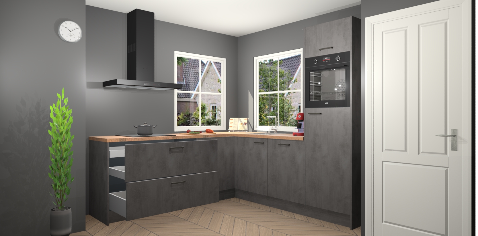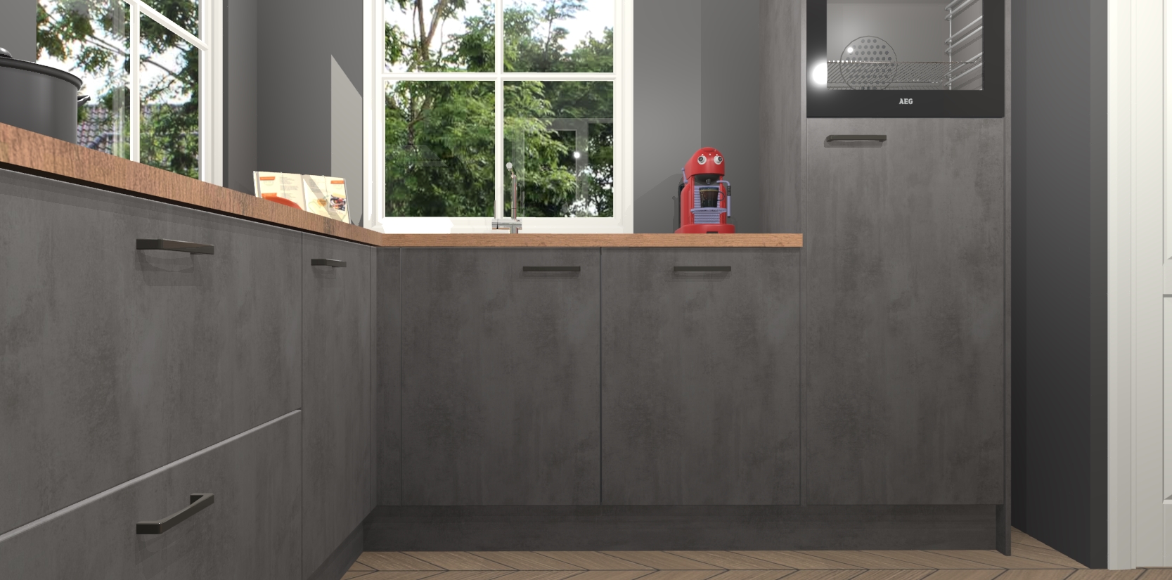 De Beton Antraciet keuken Pai bevat vijf essentiële inbouwapparaten - een oven, inductiekookplaat, afzuigkap, vaatwasser en koelkast - zodat u er na levering meteen in kunt. Voor de slimme kopers die weten dat apparaten vaak het verschil kunnen maken tussen functioneel en luxueus, bieden we eenvoudige upgradeopties naar AEG, van oven naar combimagnetron na bestelling of naar een kookplaat met geïntrigeerde afzuiging. En met onze vaste lage prijs en snelle levering binnen zeven weken vanaf de orderbevestiging hoeft u zich geen zorgen te maken over verborgen kosten of lange levertijden die uw droomkeuken kunnen vertragen.