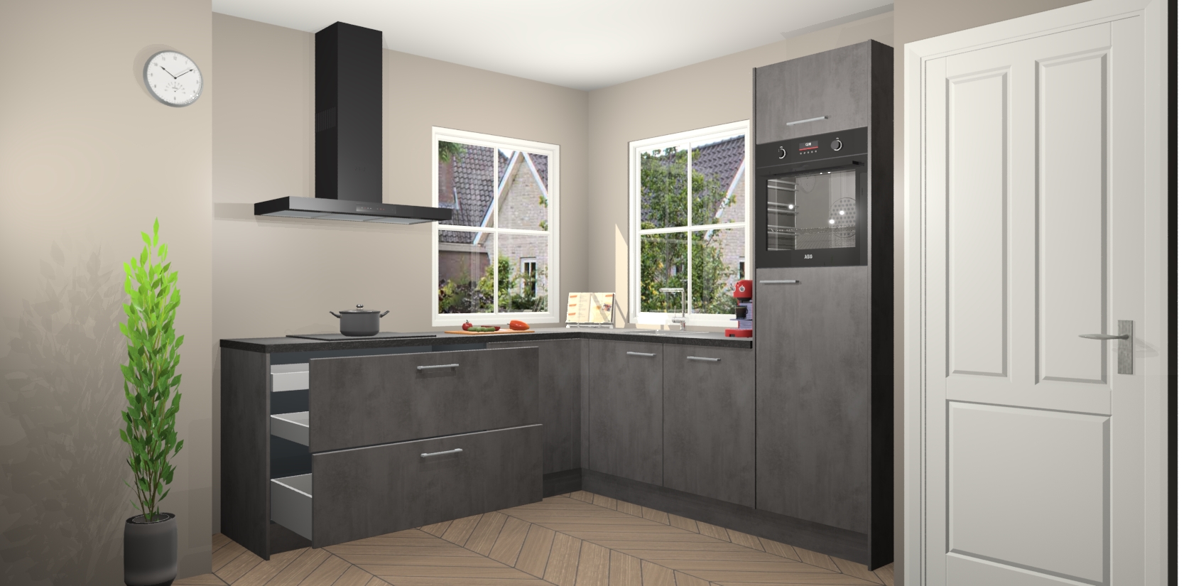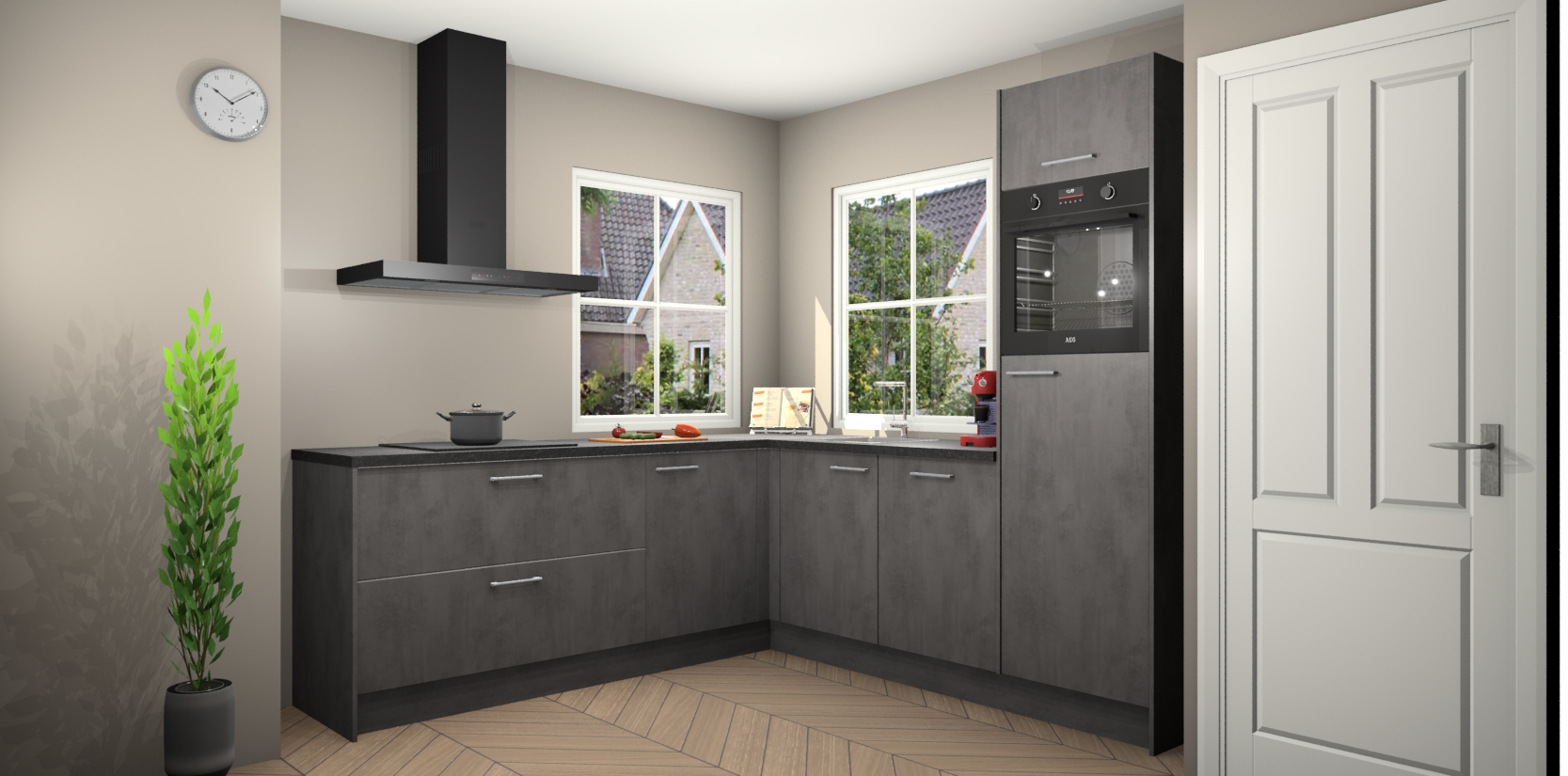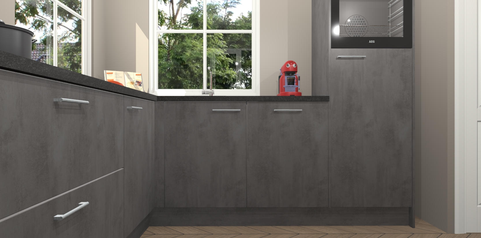 De Beton Antraciet keuken Pai bevat vijf essentiële inbouwapparaten - een oven, inductiekookplaat, afzuigkap, vaatwasser en koelkast - zodat u er na levering meteen in kunt. Voor de slimme kopers die weten dat apparaten vaak het verschil kunnen maken tussen functioneel en luxueus, bieden we eenvoudige upgradeopties naar AEG, van oven naar combimagnetron na bestelling of naar een kookplaat met geïntrigeerde afzuiging. En met onze vaste lage prijs en snelle levering binnen zeven weken vanaf de orderbevestiging hoeft u zich geen zorgen te maken over verborgen kosten of lange levertijden die uw droomkeuken kunnen vertragen.