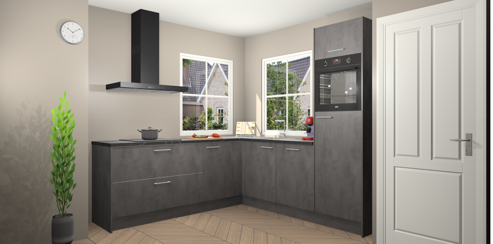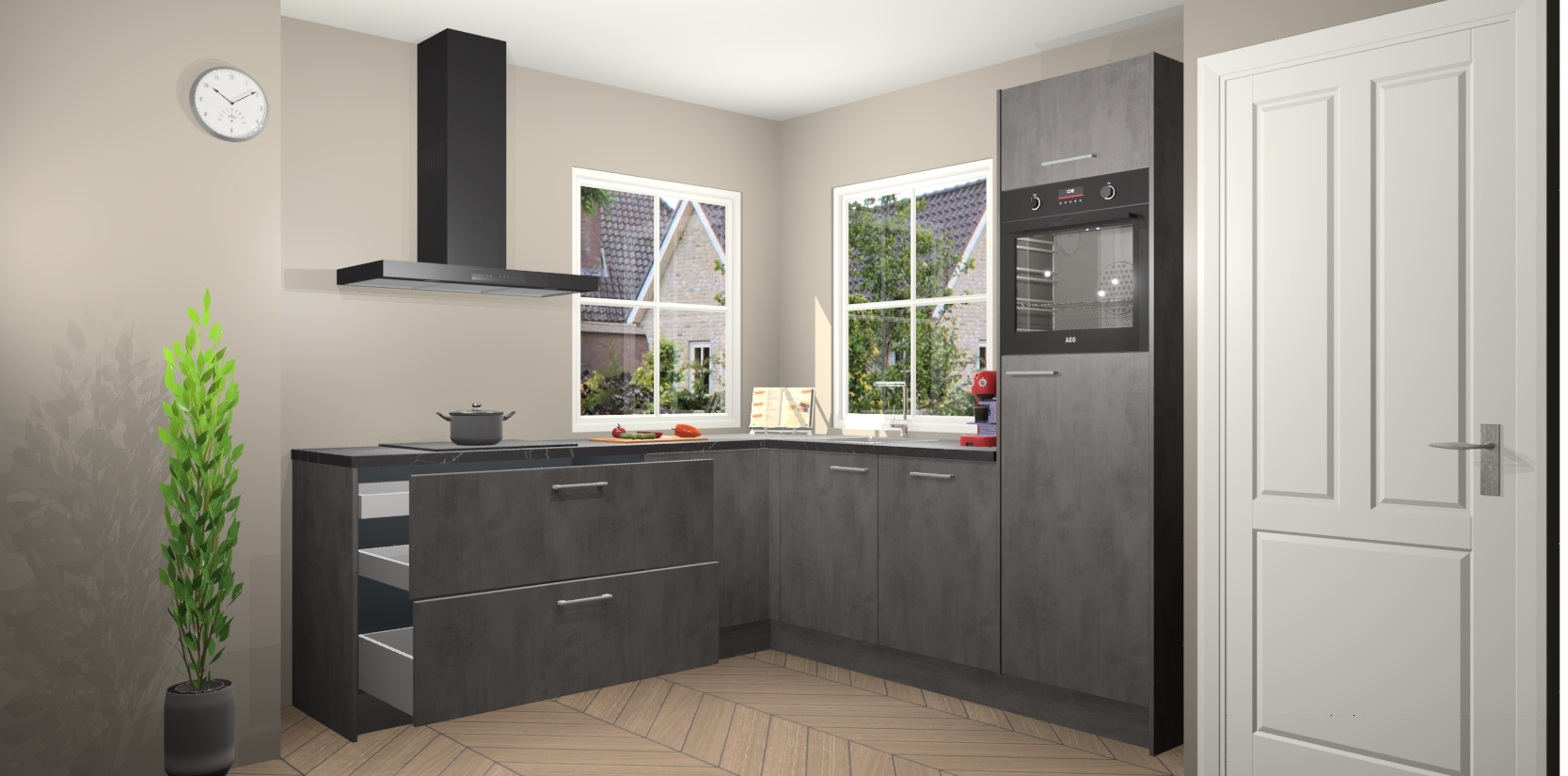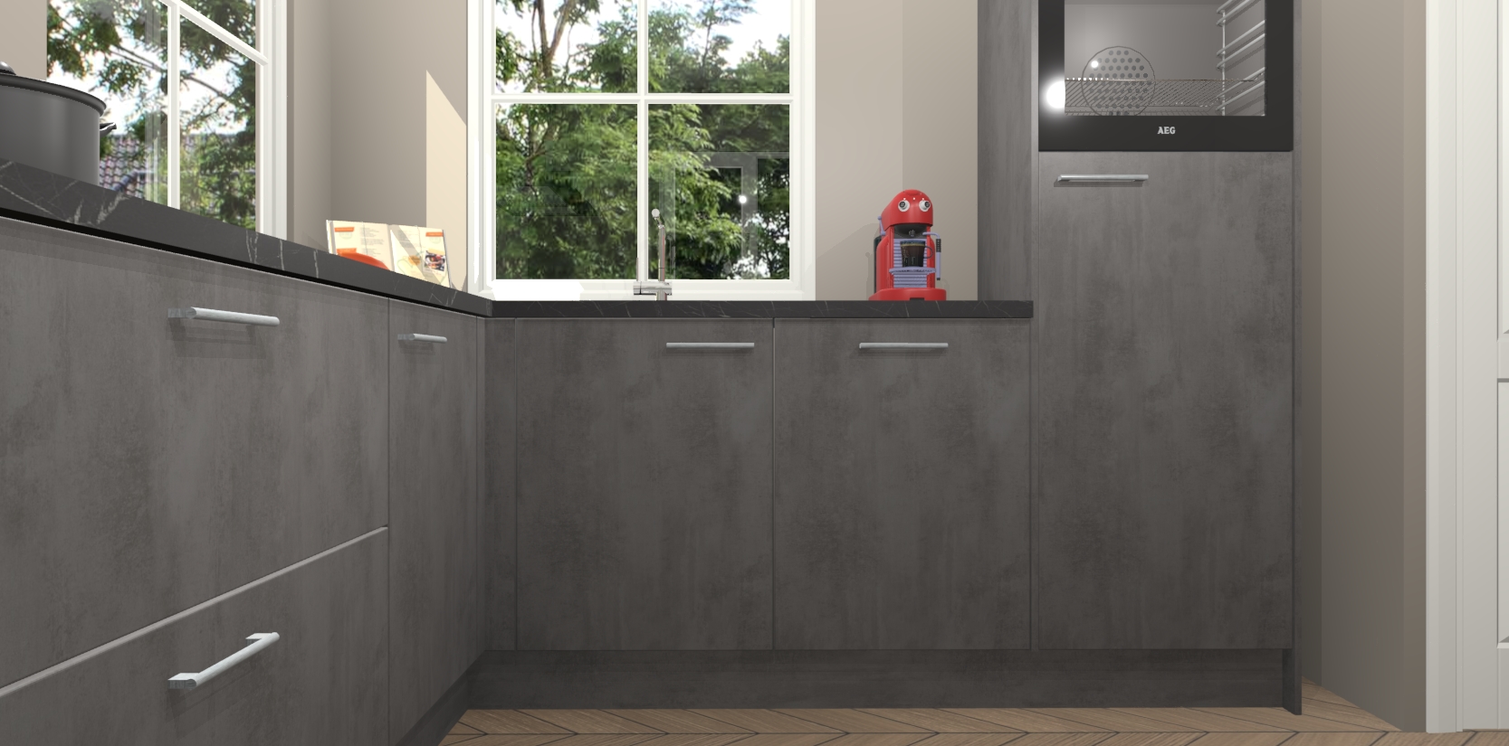 De Beton Antraciet keuken Pai bevat vijf essentiële inbouwapparaten - een oven, inductiekookplaat, afzuigkap, vaatwasser en koelkast - zodat u er na levering meteen in kunt. Voor de slimme kopers die weten dat apparaten vaak het verschil kunnen maken tussen functioneel en luxueus, bieden we eenvoudige upgradeopties naar AEG, van oven naar combimagnetron na bestelling of naar een kookplaat met geïntrigeerde afzuiging. En met onze vaste lage prijs en snelle levering binnen zeven weken vanaf de orderbevestiging hoeft u zich geen zorgen te maken over verborgen kosten of lange levertijden die uw droomkeuken kunnen vertragen.