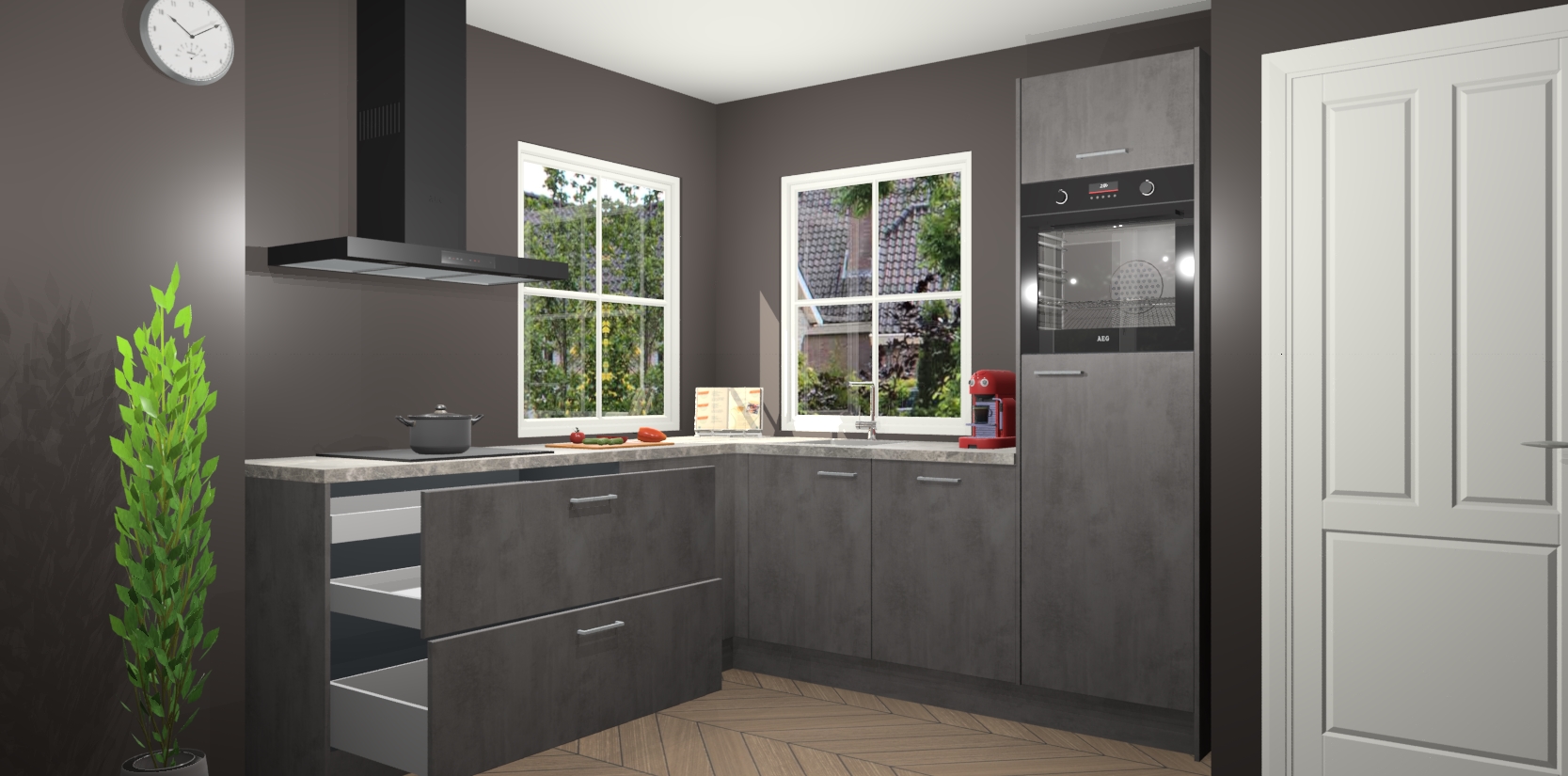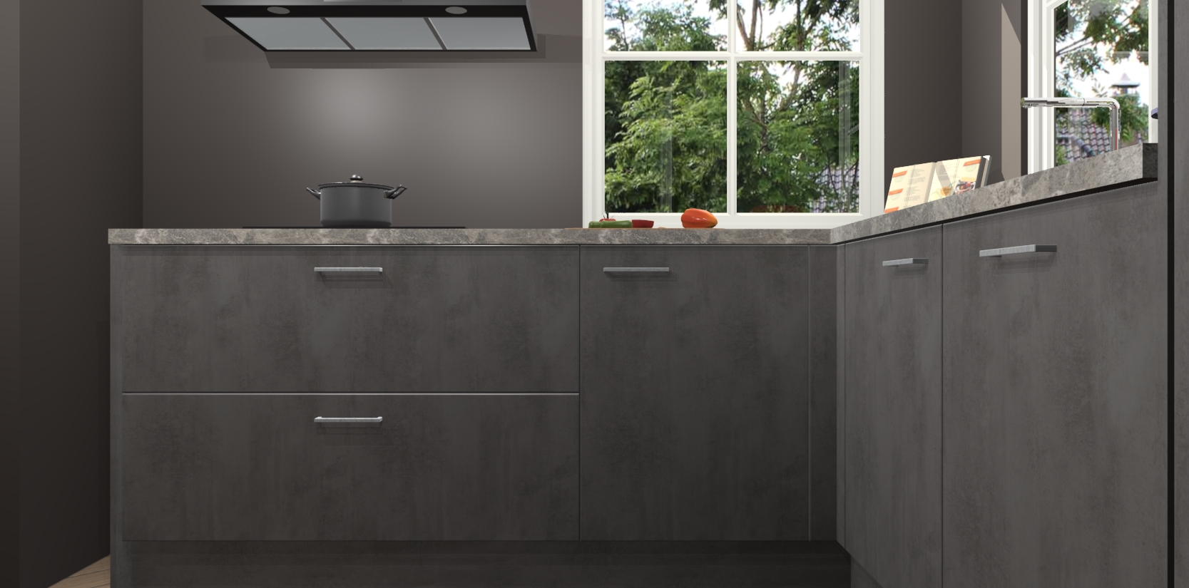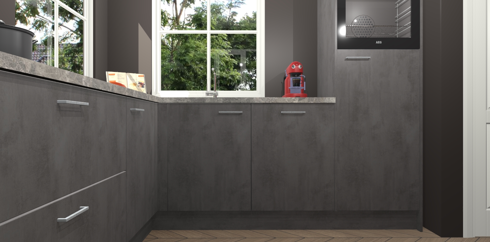 De Beton Antraciet keuken Pai bevat vijf essentiële inbouwapparaten - een oven, inductiekookplaat, afzuigkap, vaatwasser en koelkast - zodat u er na levering meteen in kunt. Voor de slimme kopers die weten dat apparaten vaak het verschil kunnen maken tussen functioneel en luxueus, bieden we eenvoudige upgradeopties naar AEG, van oven naar combimagnetron na bestelling of naar een kookplaat met geïntrigeerde afzuiging. En met onze vaste lage prijs en snelle levering binnen zeven weken vanaf de orderbevestiging hoeft u zich geen zorgen te maken over verborgen kosten of lange levertijden die uw droomkeuken kunnen vertragen.