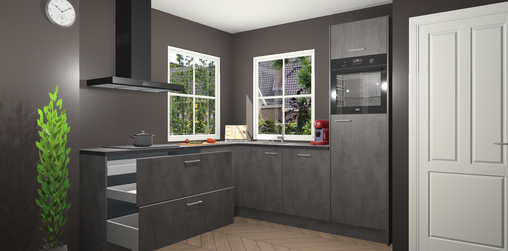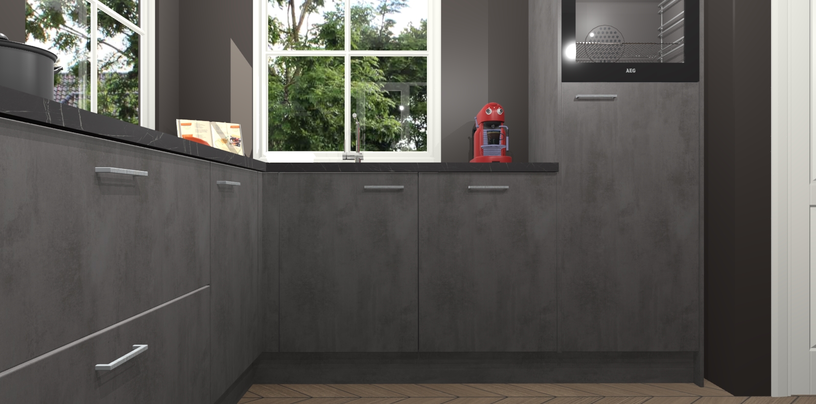 De Beton Antraciet keuken Pai bevat vijf essentiële inbouwapparaten - een oven, inductiekookplaat, afzuigkap, vaatwasser en koelkast - zodat u er na levering meteen in kunt. Voor de slimme kopers die weten dat apparaten vaak het verschil kunnen maken tussen functioneel en luxueus, bieden we eenvoudige upgradeopties naar AEG, van oven naar combimagnetron na bestelling of naar een kookplaat met geïntrigeerde afzuiging. En met onze vaste lage prijs en snelle levering binnen zeven weken vanaf de orderbevestiging hoeft u zich geen zorgen te maken over verborgen kosten of lange levertijden die uw droomkeuken kunnen vertragen.
