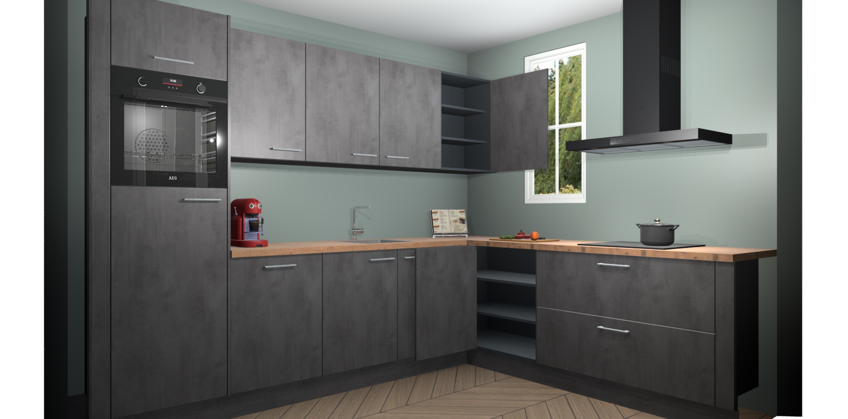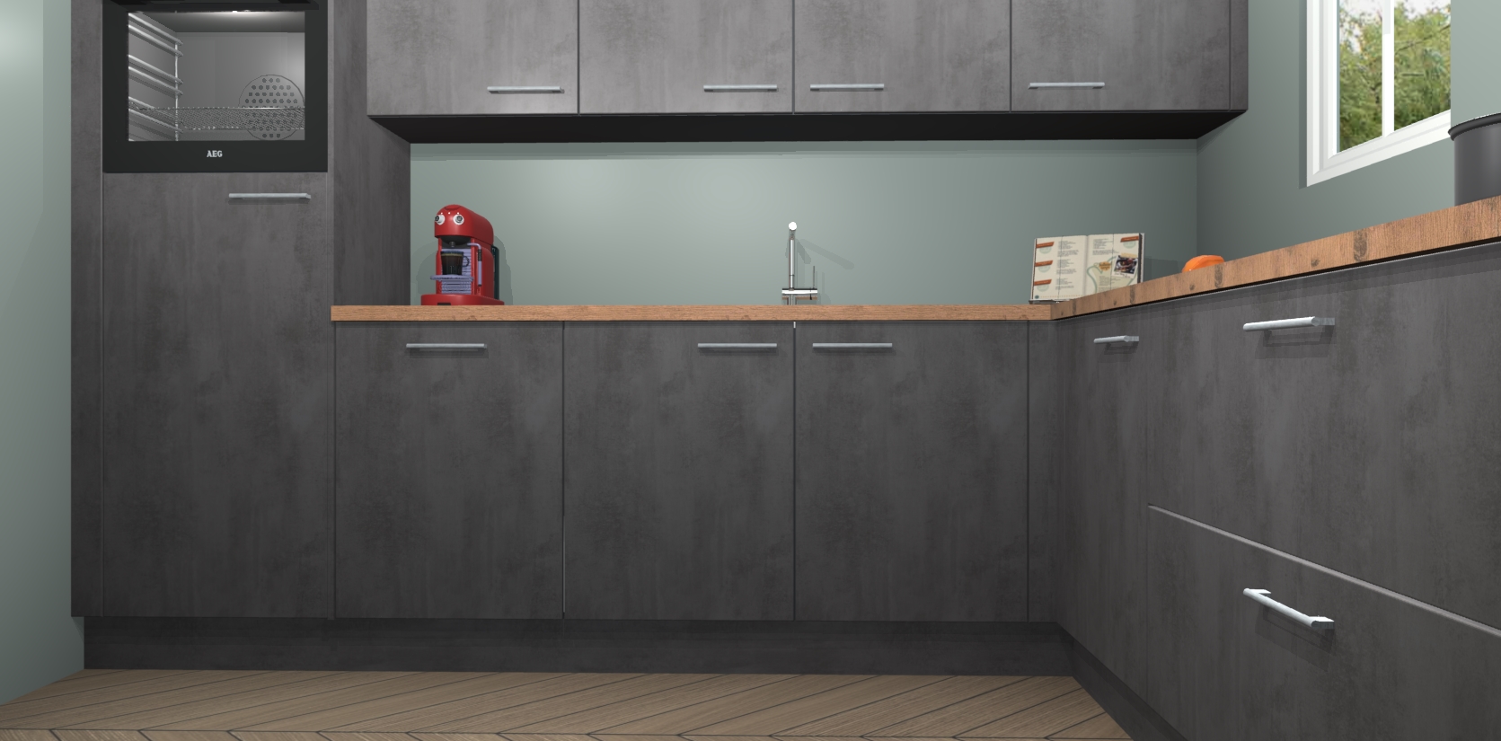 De Beton Antraciet keuken Paramaribo combineert modern ontwerp met een stijlvolle uitstraling. Met deze minimalistische look behaalt u een professionelle presentatie in uw keuken.  De kasten worden gemonteerd geleverd, wat betekent dat het gezellige tafelgenot binnen handbereik is.