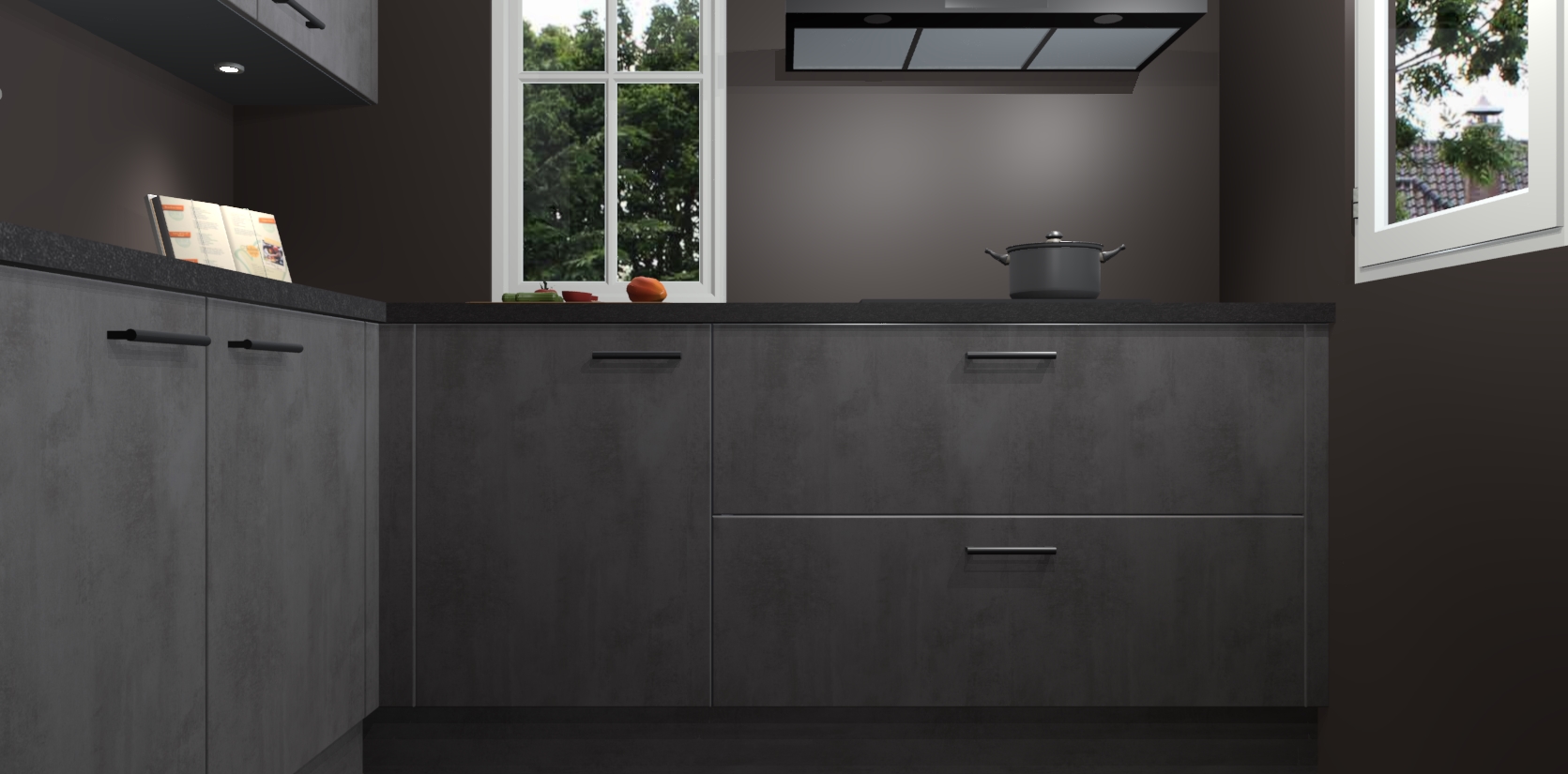 De Beton Antraciet keuken Paramaribo combineert modern ontwerp met een stijlvolle uitstraling. Met deze minimalistische look behaalt u een professionelle presentatie in uw keuken. De kasten worden gemonteerd geleverd, wat betekent dat het gezellige tafelgenot binnen handbereik is.
