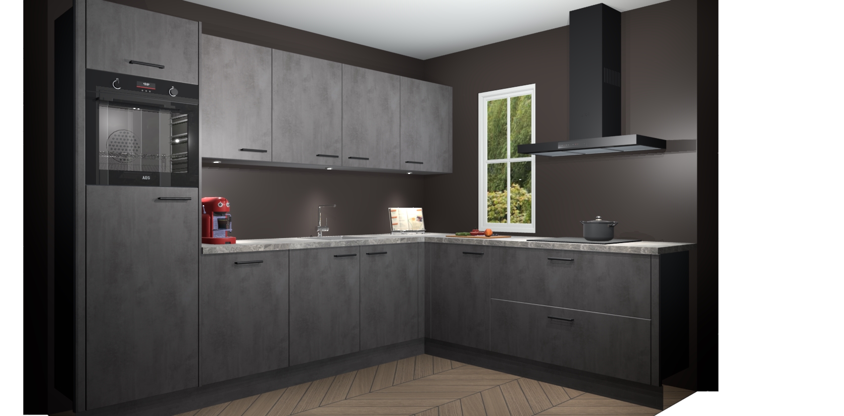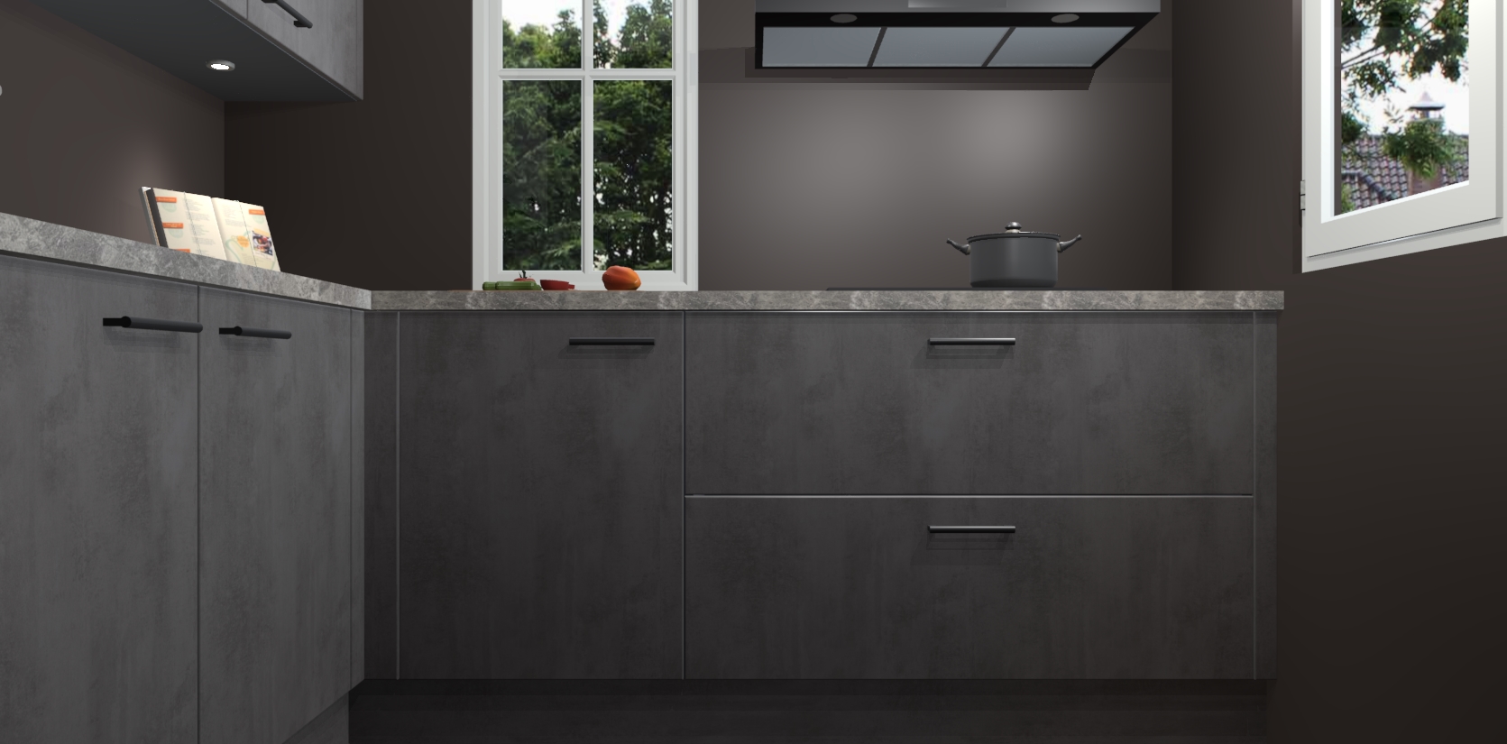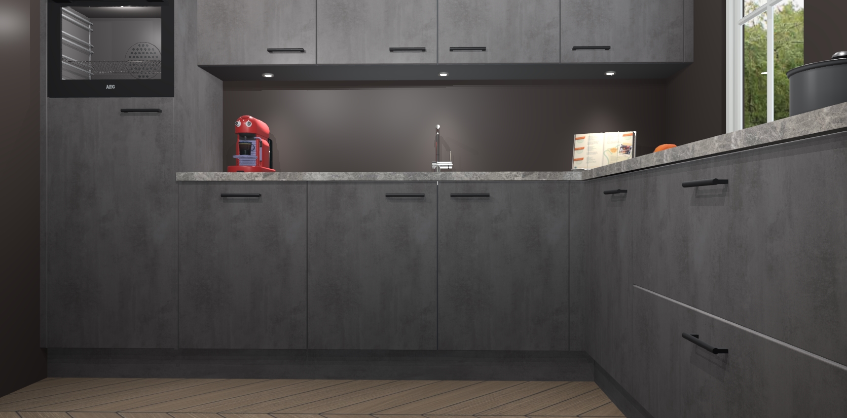 De Beton Antraciet keuken Paramaribo combineert modern ontwerp met een stijlvolle uitstraling. Met deze minimalistische look behaalt u een professionelle presentatie in uw keuken. De kasten worden gemonteerd geleverd, wat betekent dat het gezellige tafelgenot binnen handbereik is.
