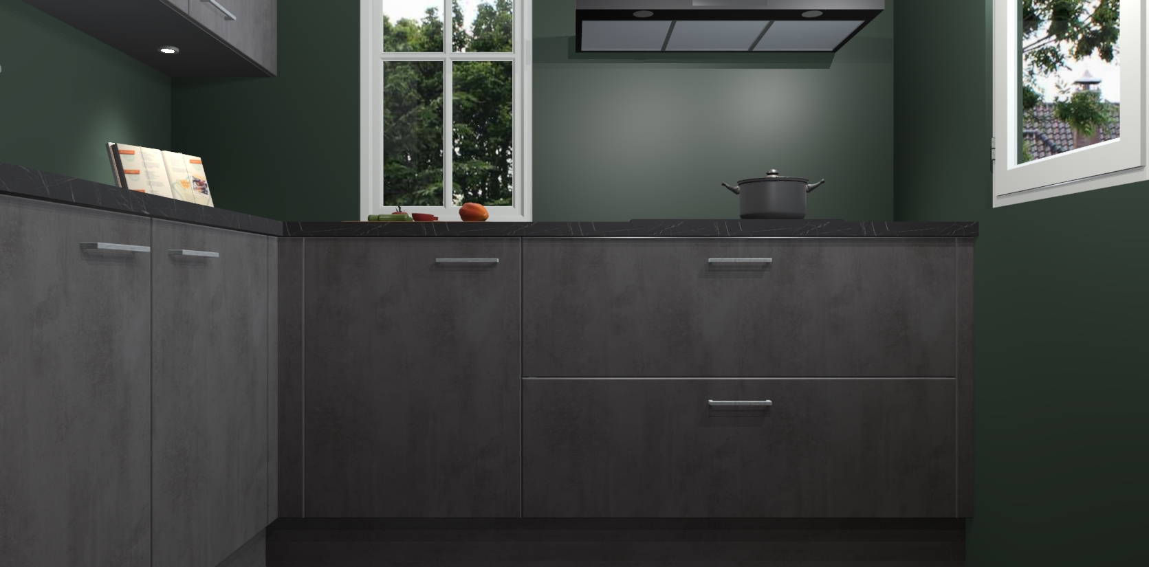 De Beton Antraciet keuken Paramaribo combineert modern ontwerp met een stijlvolle uitstraling. Met deze minimalistische look behaalt u een professionelle presentatie in uw keuken. De kasten worden gemonteerd geleverd, wat betekent dat het gezellige tafelgenot binnen handbereik is.