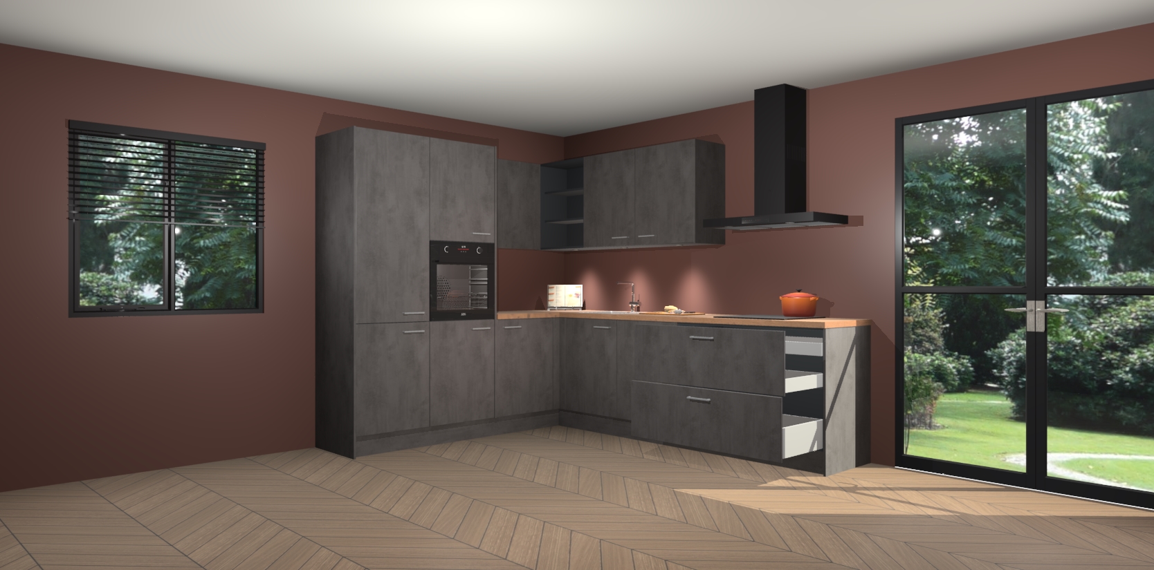 Maak kennis met de beton antraciet keuken Parla - de perfecte aanvulling voor uw moderne keuken! Ervaar tijdloos design, elegantie en een chique uitstraling met onze zwarte handgrepen, soft-close deuren en veel opbergruimte. Dit alles wordt aangeboden tegen een vaste lage prijs voor ongeëvenaarde Duitse keukenkwaliteit!
