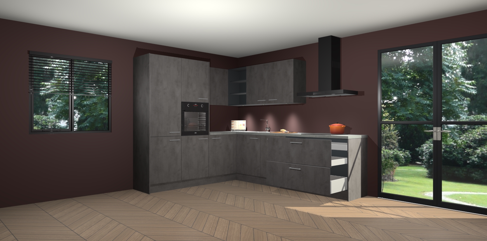 Maak kennis met de beton antraciet keuken Parla - de perfecte aanvulling voor uw moderne keuken! Ervaar tijdloos design, elegantie en een chique uitstraling met onze zwarte handgrepen, soft-close deuren en veel opbergruimte. Dit alles wordt aangeboden tegen een vaste lage prijs voor ongeëvenaarde Duitse keukenkwaliteit!