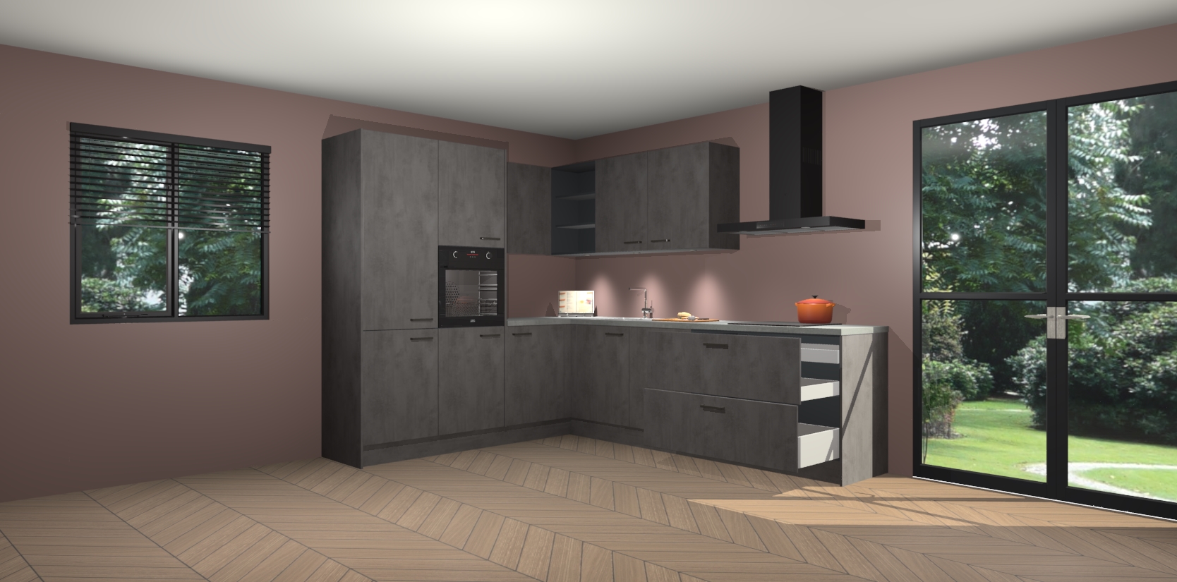 Maak kennis met de beton antraciet keuken Parla - de perfecte aanvulling voor uw moderne keuken! Ervaar tijdloos design, elegantie en een chique uitstraling met onze zwarte handgrepen, soft-close deuren en veel opbergruimte. Dit alles wordt aangeboden tegen een vaste lage prijs voor ongeëvenaarde Duitse keukenkwaliteit!
