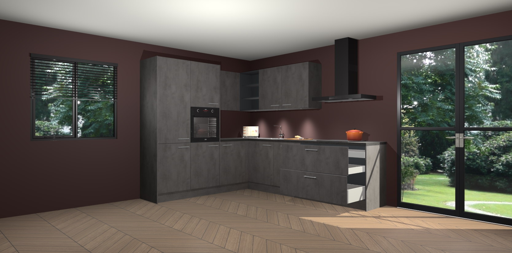 Maak kennis met de beton antraciet keuken Parla - de perfecte aanvulling voor uw moderne keuken! Ervaar tijdloos design, elegantie en een chique uitstraling met onze zwarte handgrepen, soft-close deuren en veel opbergruimte. Dit alles wordt aangeboden tegen een vaste lage prijs voor ongeëvenaarde Duitse keukenkwaliteit!