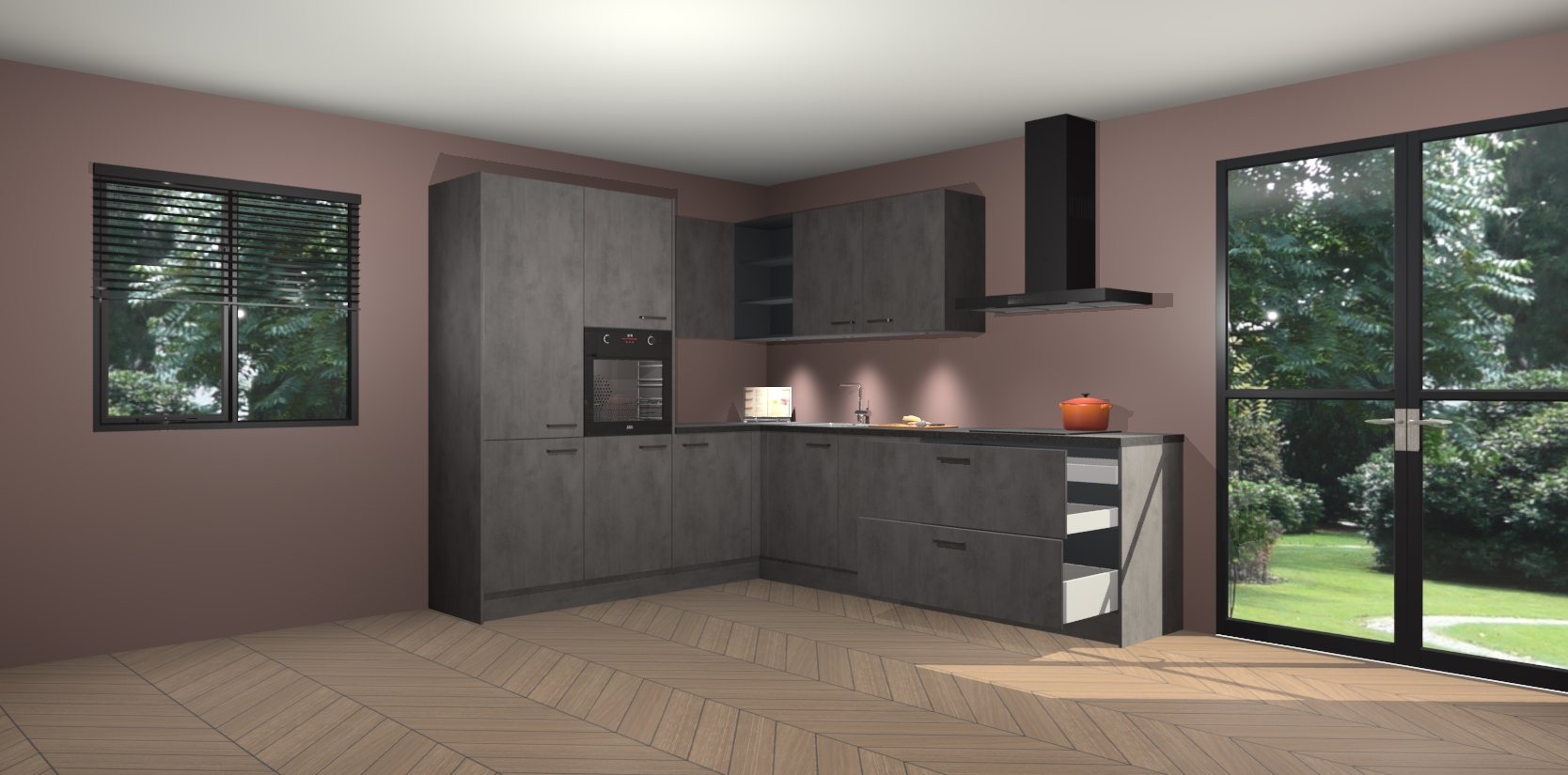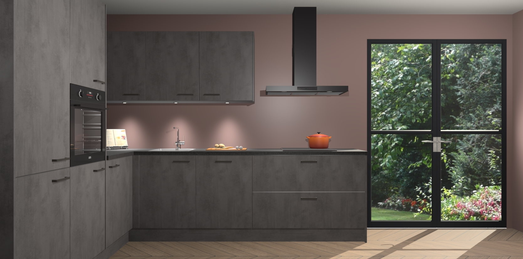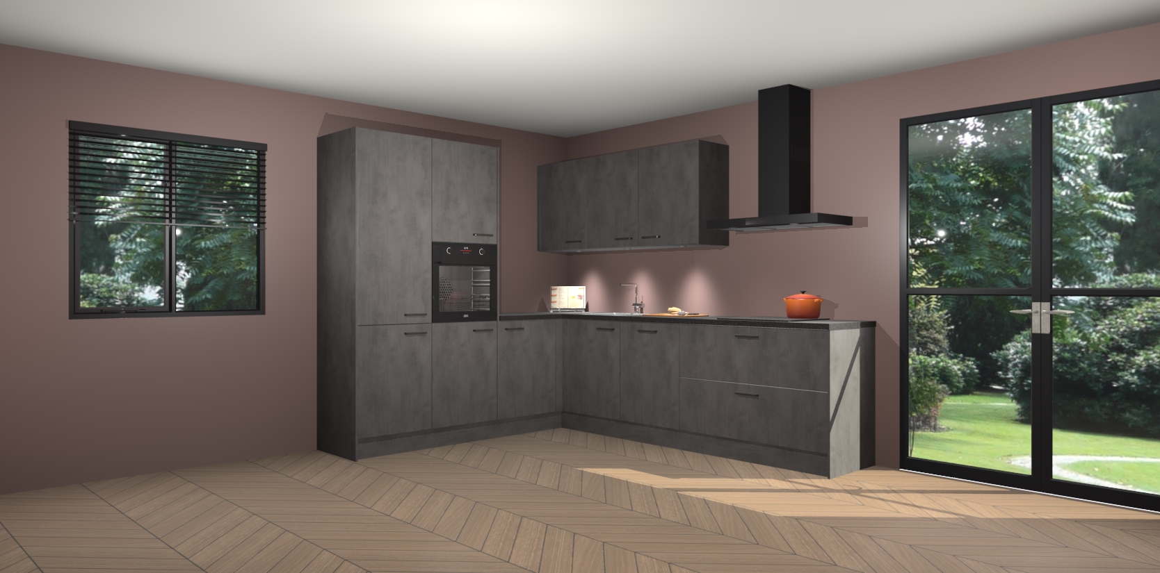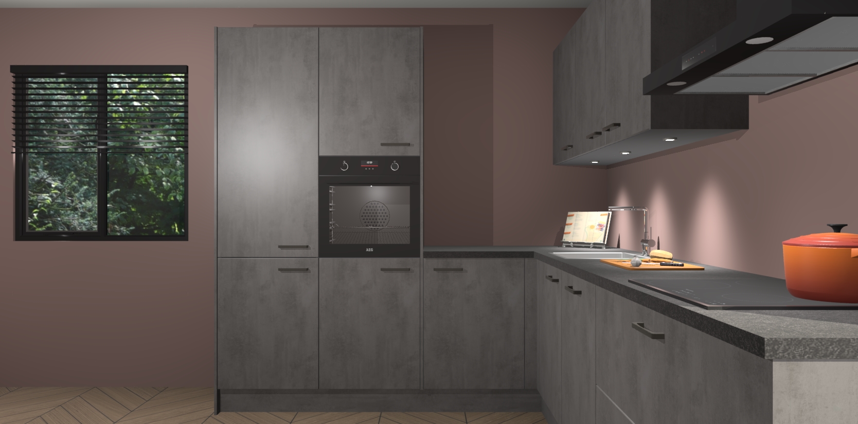 Maak kennis met de beton antraciet keuken Parla - de perfecte aanvulling voor uw moderne keuken! Ervaar tijdloos design, elegantie en een chique uitstraling met onze zwarte handgrepen, soft-close deuren en veel opbergruimte. Dit alles wordt aangeboden tegen een vaste lage prijs voor ongeëvenaarde Duitse keukenkwaliteit!