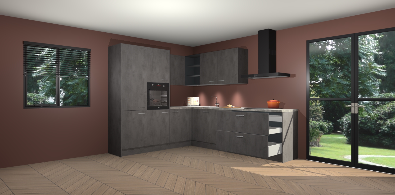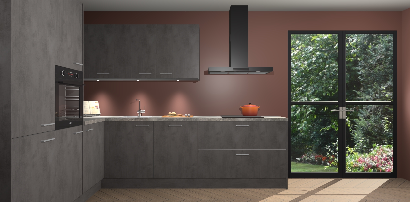 Maak kennis met de beton antraciet keuken Parla - de perfecte aanvulling voor uw moderne keuken! Ervaar tijdloos design, elegantie en een chique uitstraling met onze zwarte handgrepen, soft-close deuren en veel opbergruimte. Dit alles wordt aangeboden tegen een vaste lage prijs voor ongeëvenaarde Duitse keukenkwaliteit!