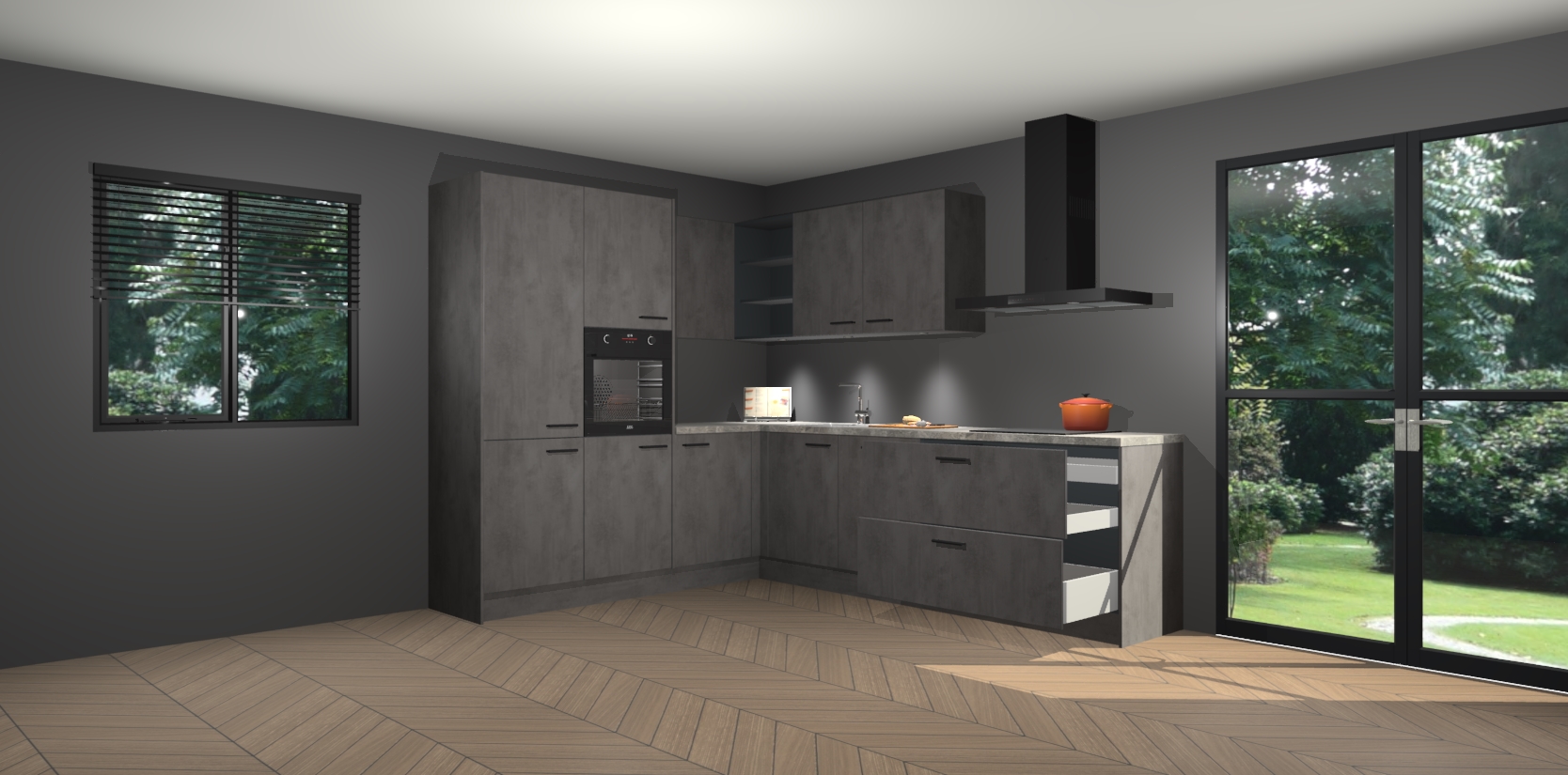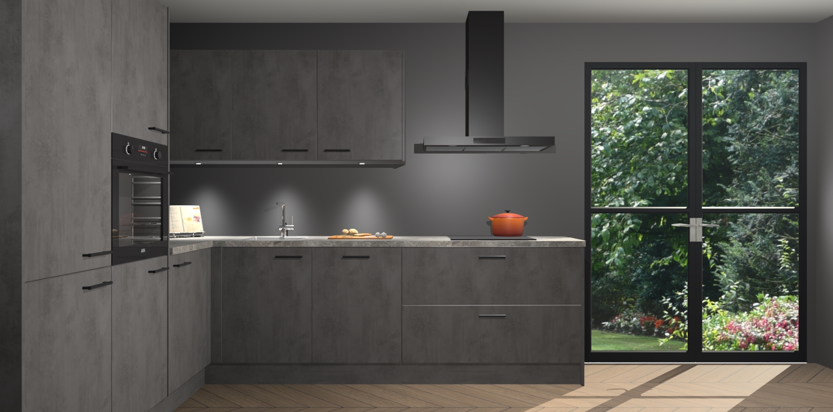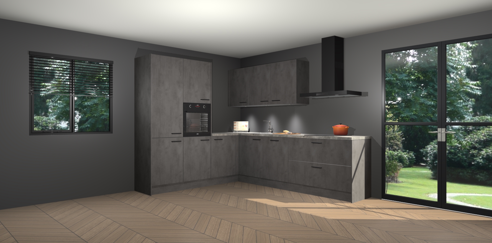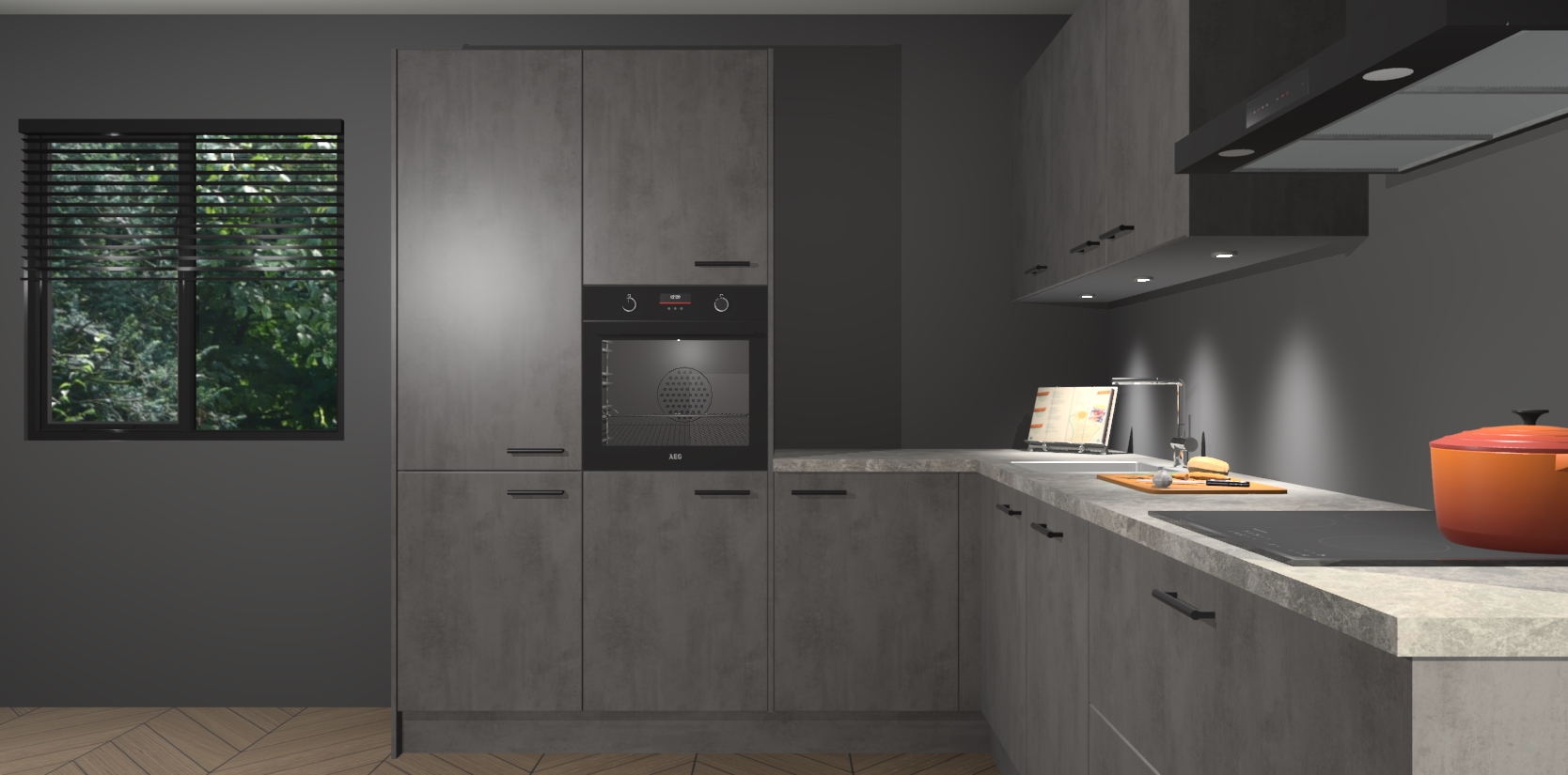 Maak kennis met de beton antraciet keuken Parla - de perfecte aanvulling voor uw moderne keuken! Ervaar tijdloos design, elegantie en een chique uitstraling met onze zwarte handgrepen, soft-close deuren en veel opbergruimte. Dit alles wordt aangeboden tegen een vaste lage prijs voor ongeëvenaarde Duitse keukenkwaliteit!