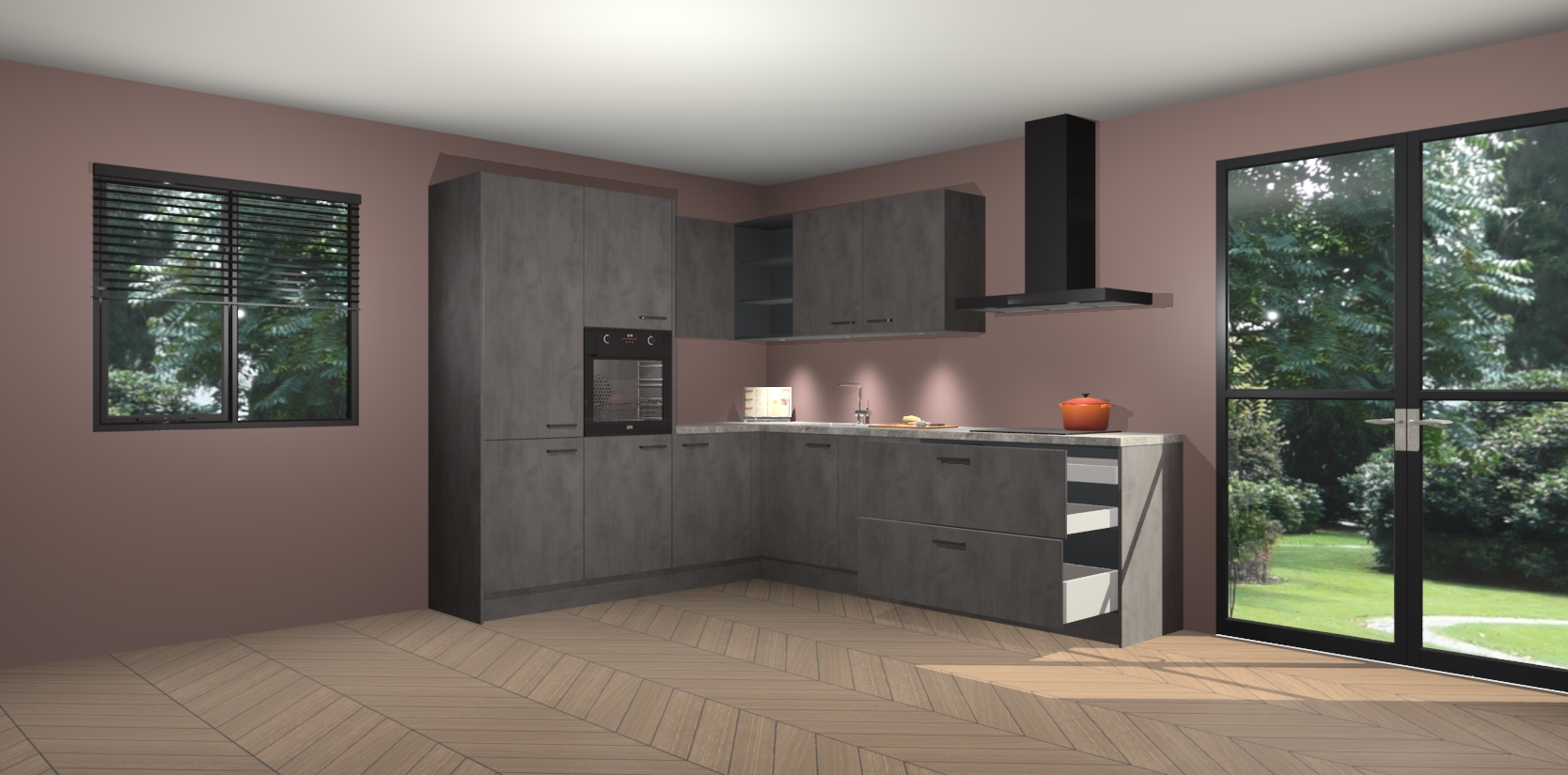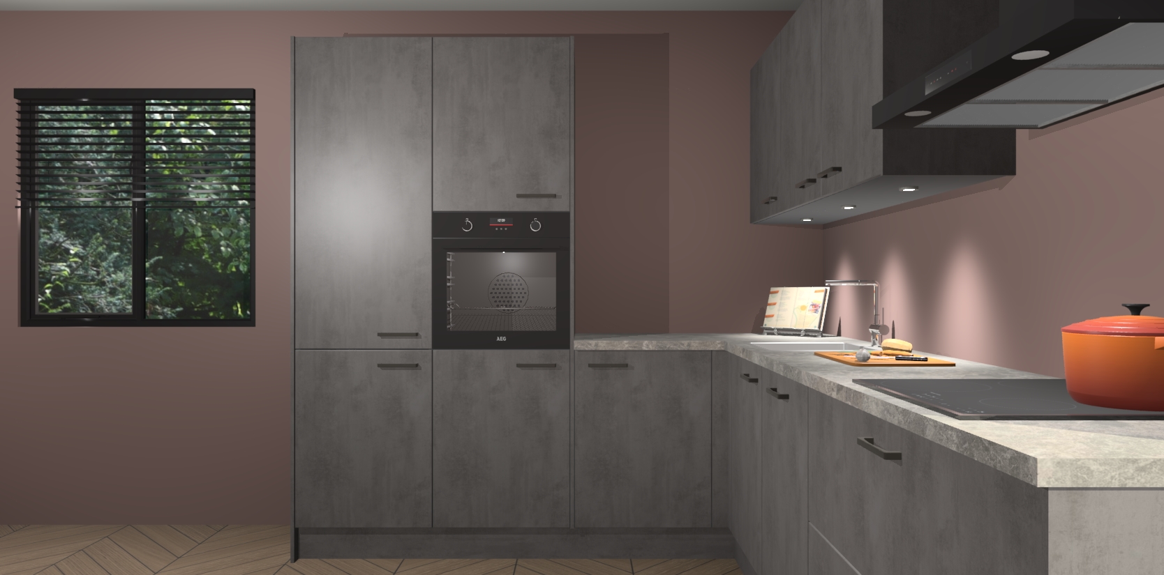 Maak kennis met de beton antraciet keuken Parla - de perfecte aanvulling voor uw moderne keuken! Ervaar tijdloos design, elegantie en een chique uitstraling met onze zwarte handgrepen, soft-close deuren en veel opbergruimte. Dit alles wordt aangeboden tegen een vaste lage prijs voor ongeëvenaarde Duitse keukenkwaliteit!