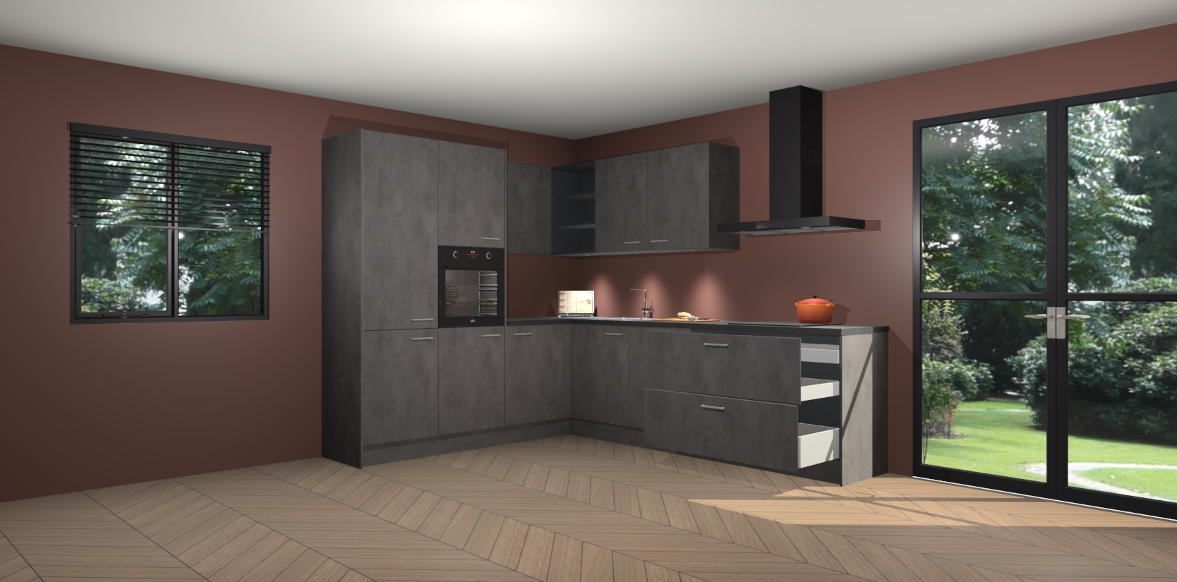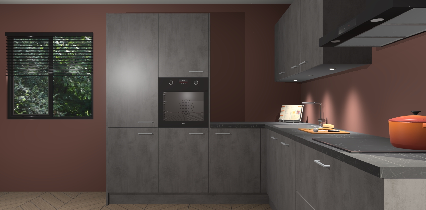Maak kennis met de beton antraciet keuken Parla - de perfecte aanvulling voor uw moderne keuken! Ervaar tijdloos design, elegantie en een chique uitstraling met onze zwarte handgrepen, soft-close deuren en veel opbergruimte. Dit alles wordt aangeboden tegen een vaste lage prijs voor ongeëvenaarde Duitse keukenkwaliteit!