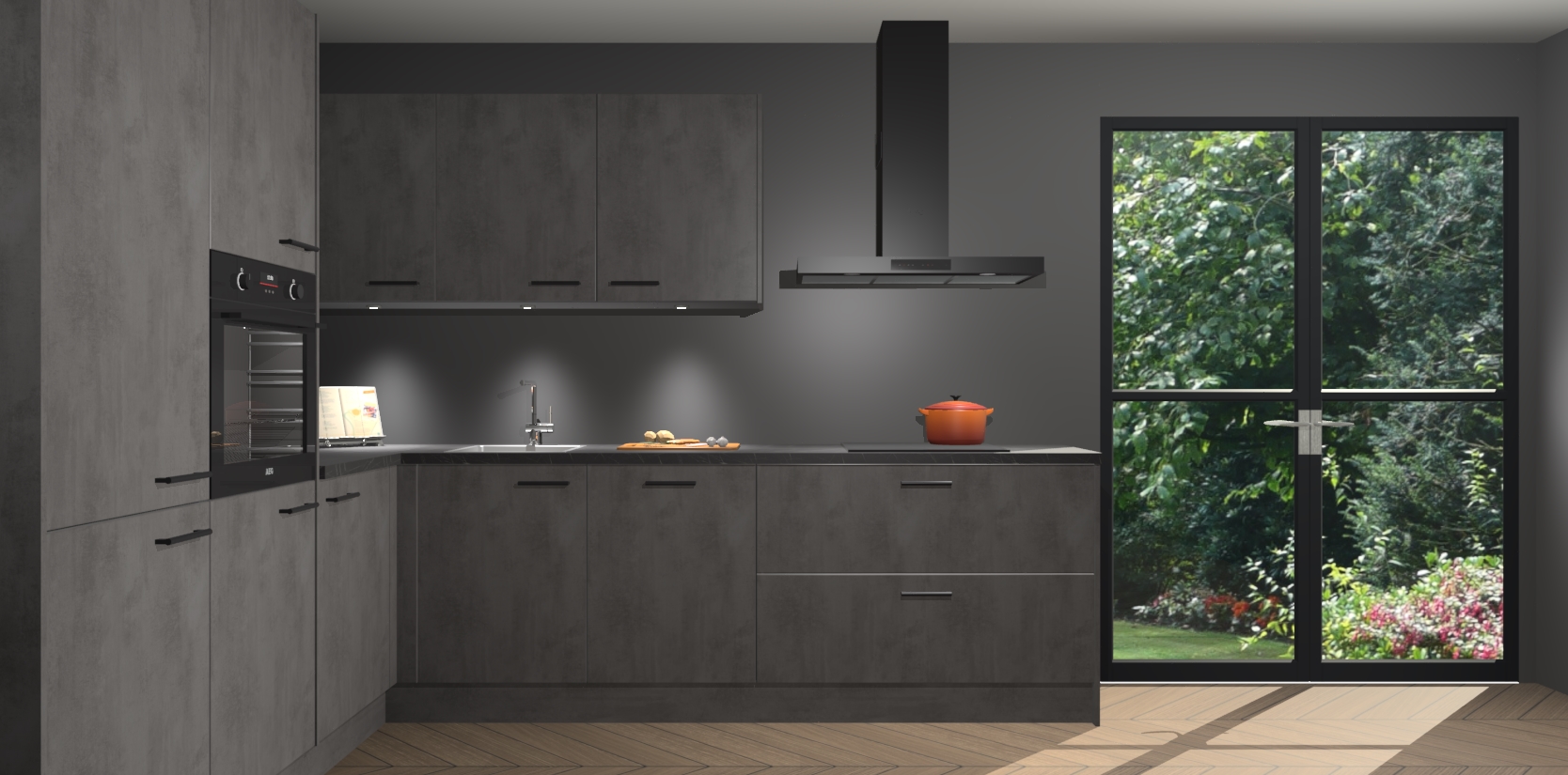 Maak kennis met de beton antraciet keuken Parla - de perfecte aanvulling voor uw moderne keuken! Ervaar tijdloos design, elegantie en een chique uitstraling met onze zwarte handgrepen, soft-close deuren en veel opbergruimte. Dit alles wordt aangeboden tegen een vaste lage prijs voor ongeëvenaarde Duitse keukenkwaliteit!