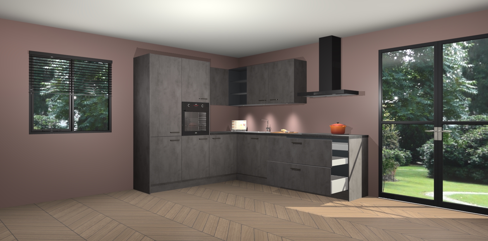 Maak kennis met de beton antraciet keuken Parla - de perfecte aanvulling voor uw moderne keuken! Ervaar tijdloos design, elegantie en een chique uitstraling met onze zwarte handgrepen, soft-close deuren en veel opbergruimte. Dit alles wordt aangeboden tegen een vaste lage prijs voor ongeëvenaarde Duitse keukenkwaliteit!