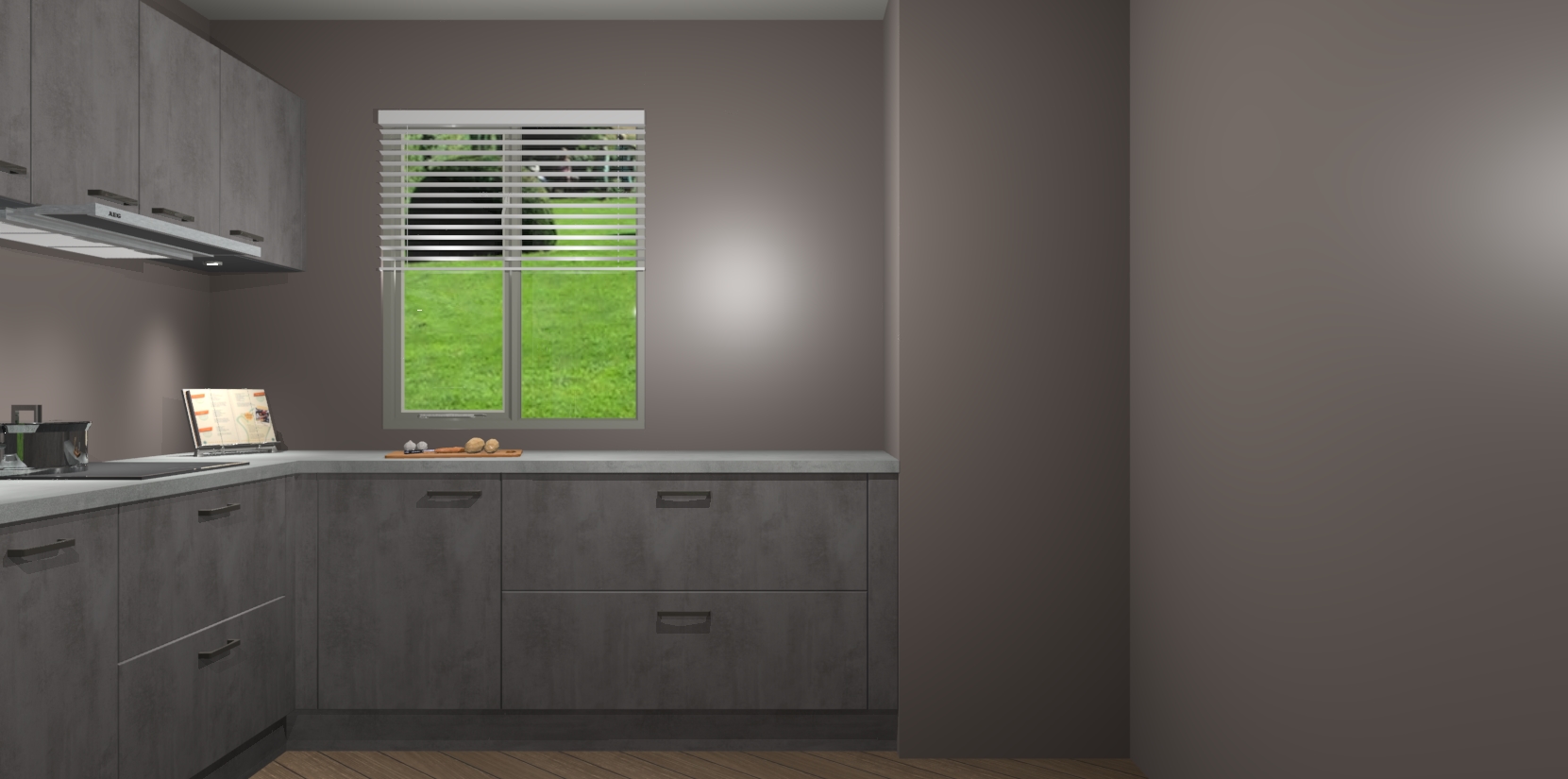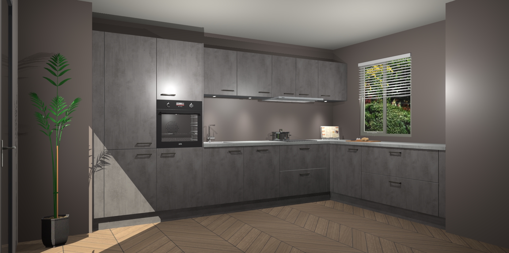 Verwelkom de natuurlijke warmte van de Beton Antraciet keuken Petten in uw huis. Deze prachtige hoekkeuken met zijn moderne design en warme houten look geeft u meer dan genoeg opbergruimte om uw comfortabel te voelen in uw keuken. Geniet van soft-close deuren die al uw gasten het gevoel zullen geven dat ze zich in een luxueuze ruimte bevinden.