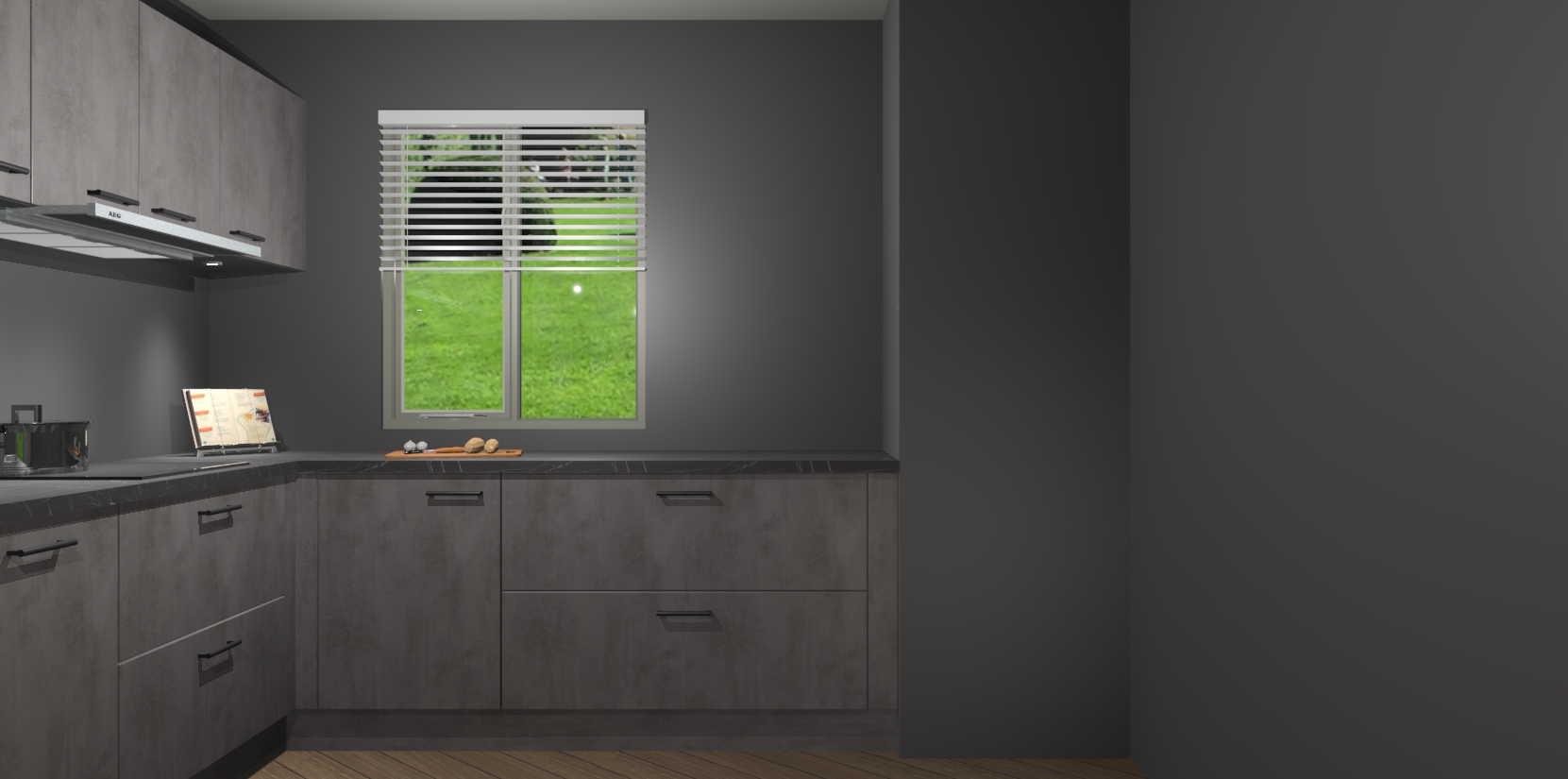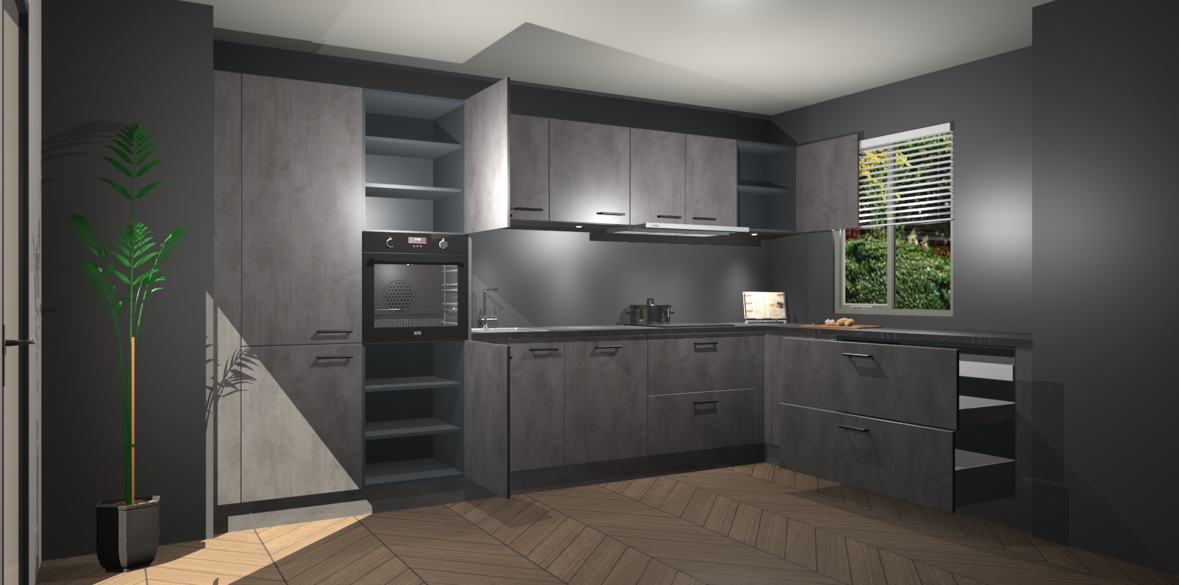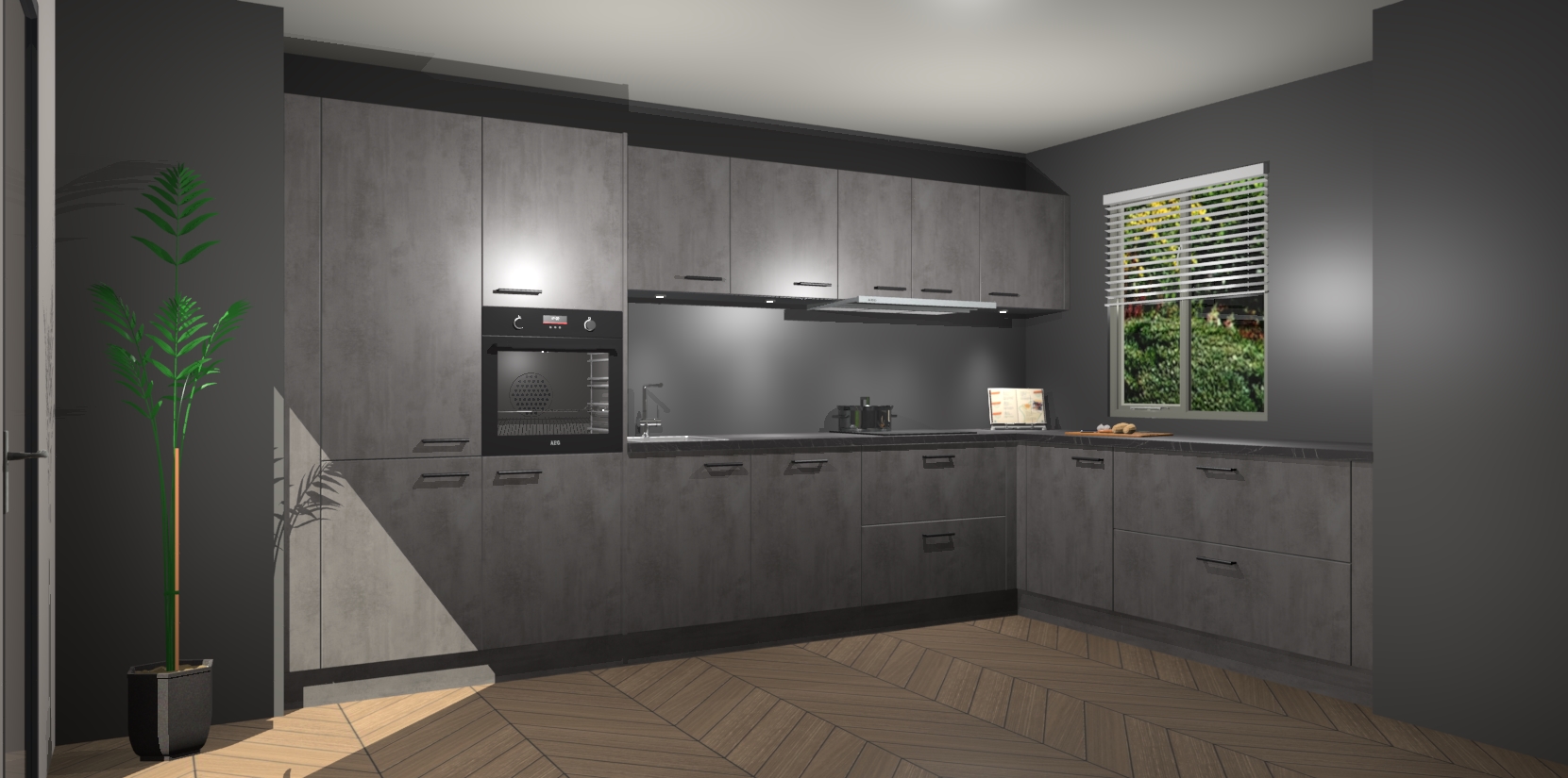 Verwelkom de natuurlijke warmte van de Beton Antraciet keuken Petten in uw huis. Deze prachtige hoekkeuken met zijn moderne design en warme houten look geeft u meer dan genoeg opbergruimte om uw comfortabel te voelen in uw keuken. Geniet van soft-close deuren die al uw gasten het gevoel zullen geven dat ze zich in een luxueuze ruimte bevinden.
