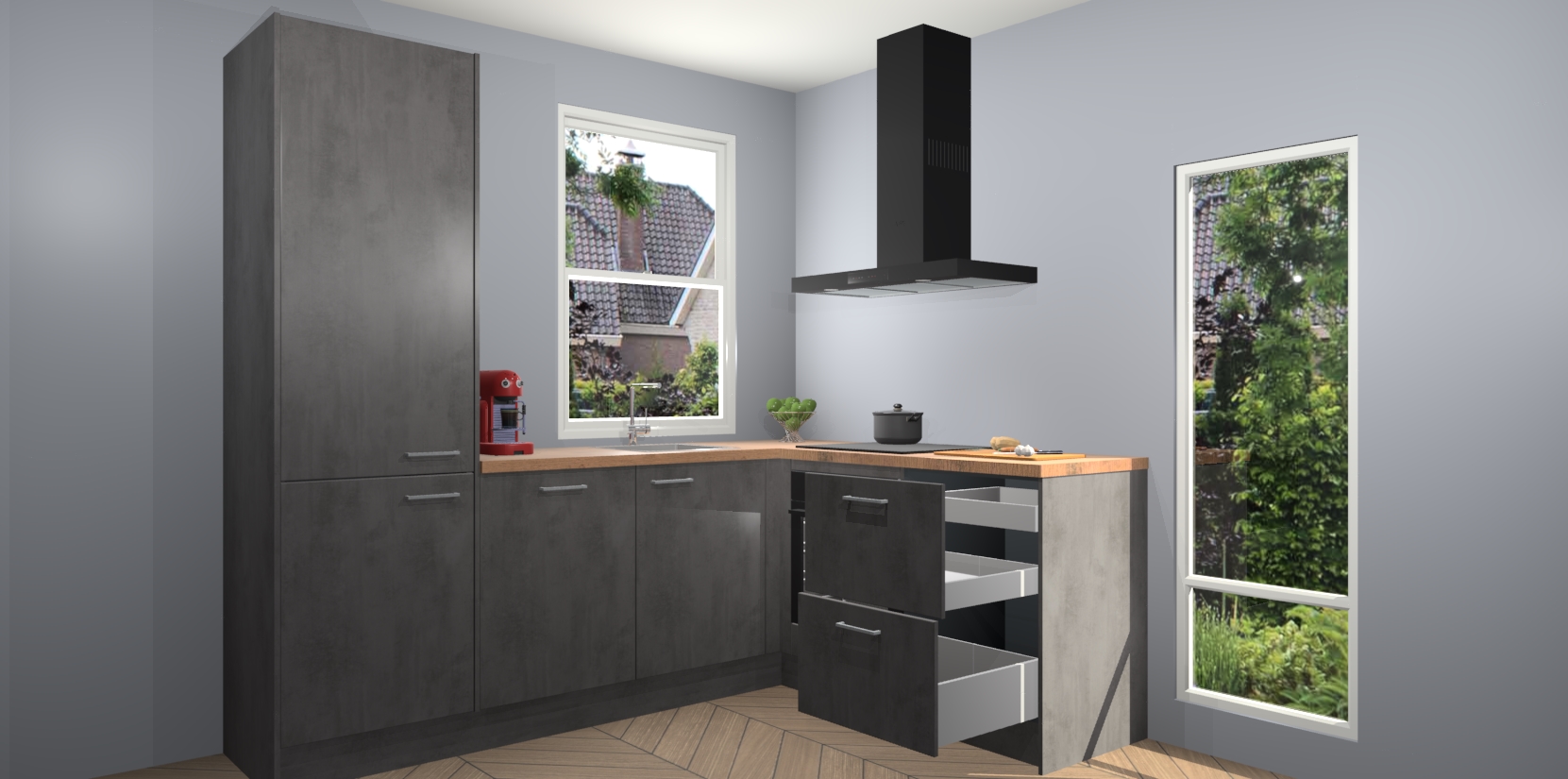 De prachtige Beton Antraciet keuken Phuket is de perfecte keuze als u op zoek bent naar een moderne hoekkeuken met alle luxe en comfort die u kunt verwachten! De uitstraling in het houtlook-design draagt bij aan de warme sfeer die u nu al voelt wanneer u er naar kijkt. Heeft u genoeg van ouderwetse keukens? Probeer dan direct deze moderne, mooie hoekkeukens en laat iedereen verbluft achter!