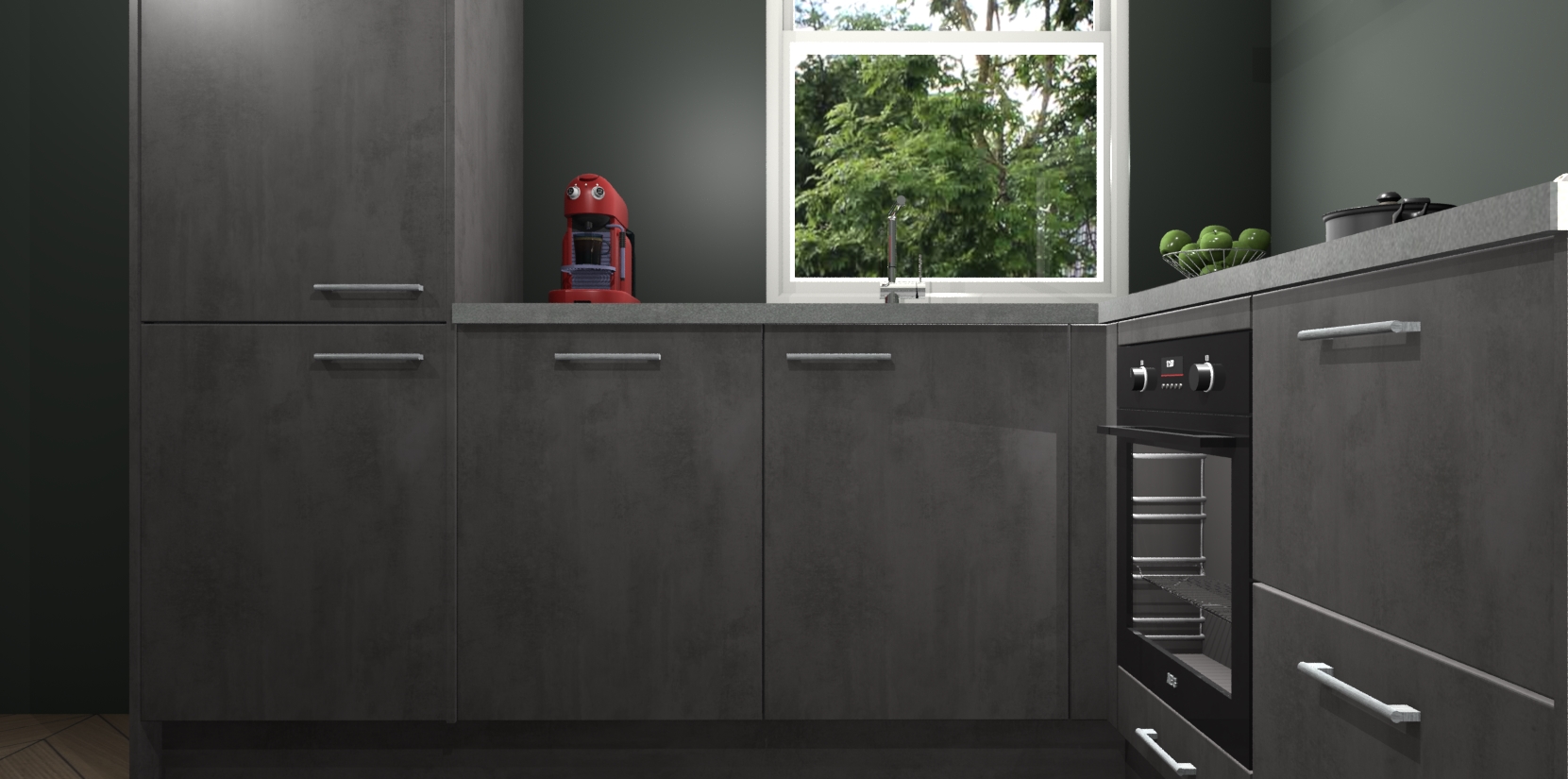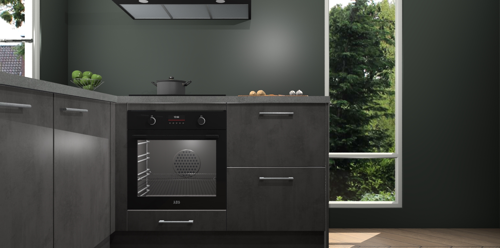De Beton Antraciet keuken Phuket heeft alles wat u maar kunt wensen. Niet alleen zijn er softclose deuren, maar ook 5 ingebouwde apparaten: een oven, inductiekookplaat, afzuigkap, vaatwasser en koelkast - waarbij u later gemakkelijk naar het AEG merk, van inductiekookplaat naar kookplaat met geïntegreerde afzuiging of van oven naar combimagnetron kunt upgraden. Dat alles tegen een vast laag tarief! Bovendien geeft de Beton Antraciet keuken Phuket supersnelle levering van 7 weken. Echt iets voor u als u er niet op wilt wachten om het resultaat te zien in eigen keuken!