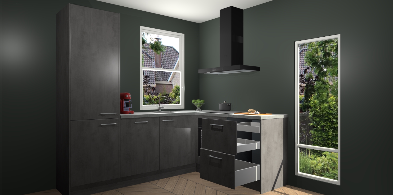 De prachtige Beton Antraciet keuken Phuket is de perfecte keuze als u op zoek bent naar een moderne hoekkeuken met alle luxe en comfort die u kunt verwachten! De uitstraling in het houtlook-design draagt bij aan de warme sfeer die u nu al voelt wanneer u er naar kijkt. Heeft u genoeg van ouderwetse keukens? Probeer dan direct deze moderne, mooie hoekkeukens en laat iedereen verbluft achter!
