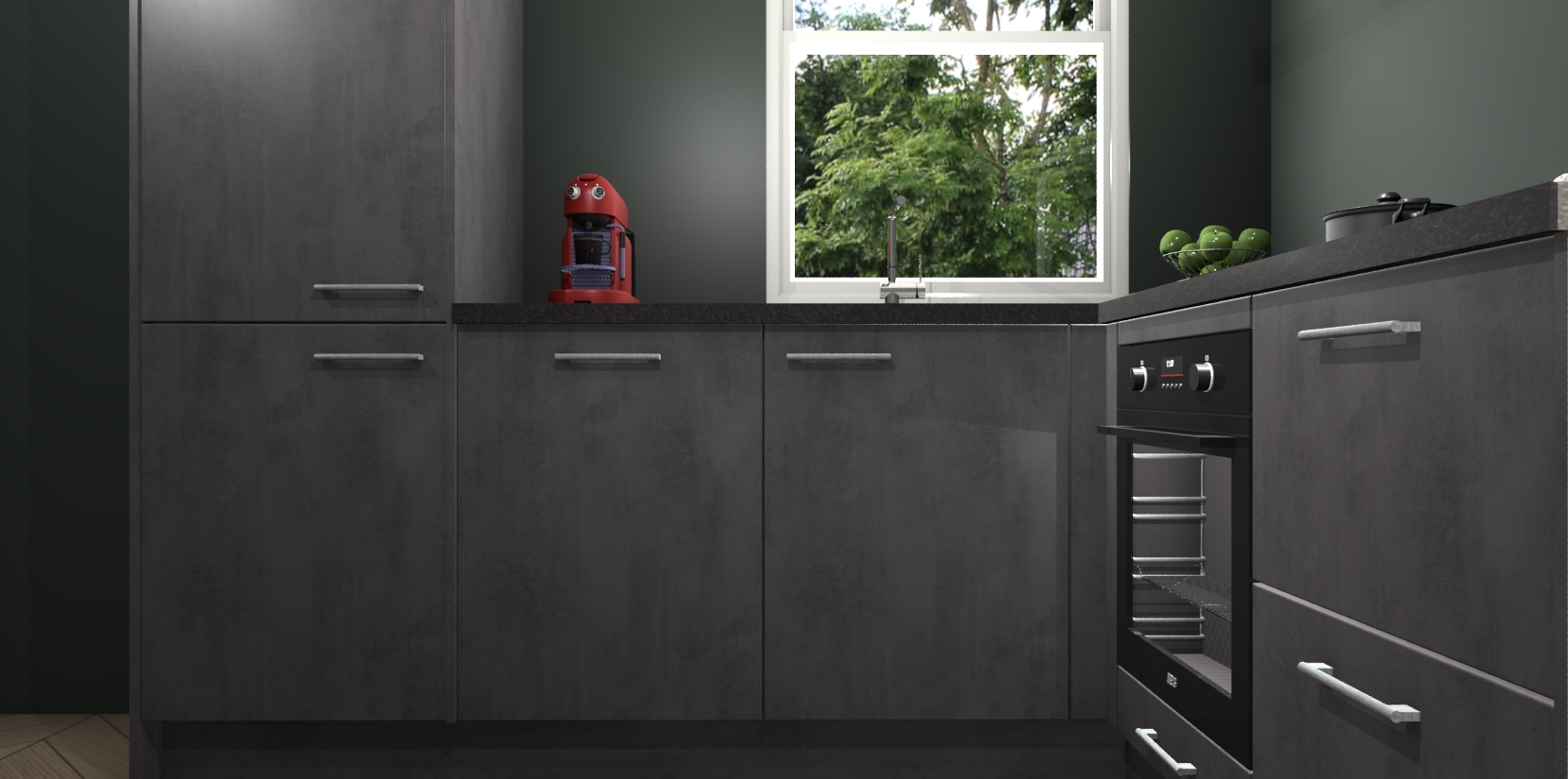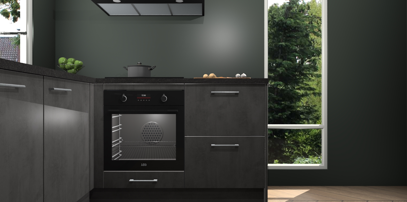 De Beton Antraciet keuken Phuket heeft alles wat u maar kunt wensen. Niet alleen zijn er softclose deuren, maar ook 5 ingebouwde apparaten: een oven, inductiekookplaat, afzuigkap, vaatwasser en koelkast - waarbij u later gemakkelijk naar het AEG merk, van inductiekookplaat naar kookplaat met geïntegreerde afzuiging of van oven naar combimagnetron kunt upgraden. Dat alles tegen een vast laag tarief! Bovendien geeft de Beton Antraciet keuken Phuket supersnelle levering van 7 weken. Echt iets voor u als u er niet op wilt wachten om het resultaat te zien in eigen keuken!