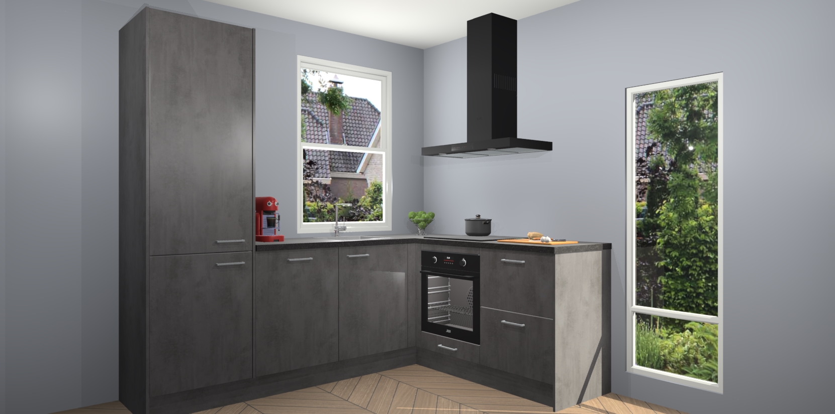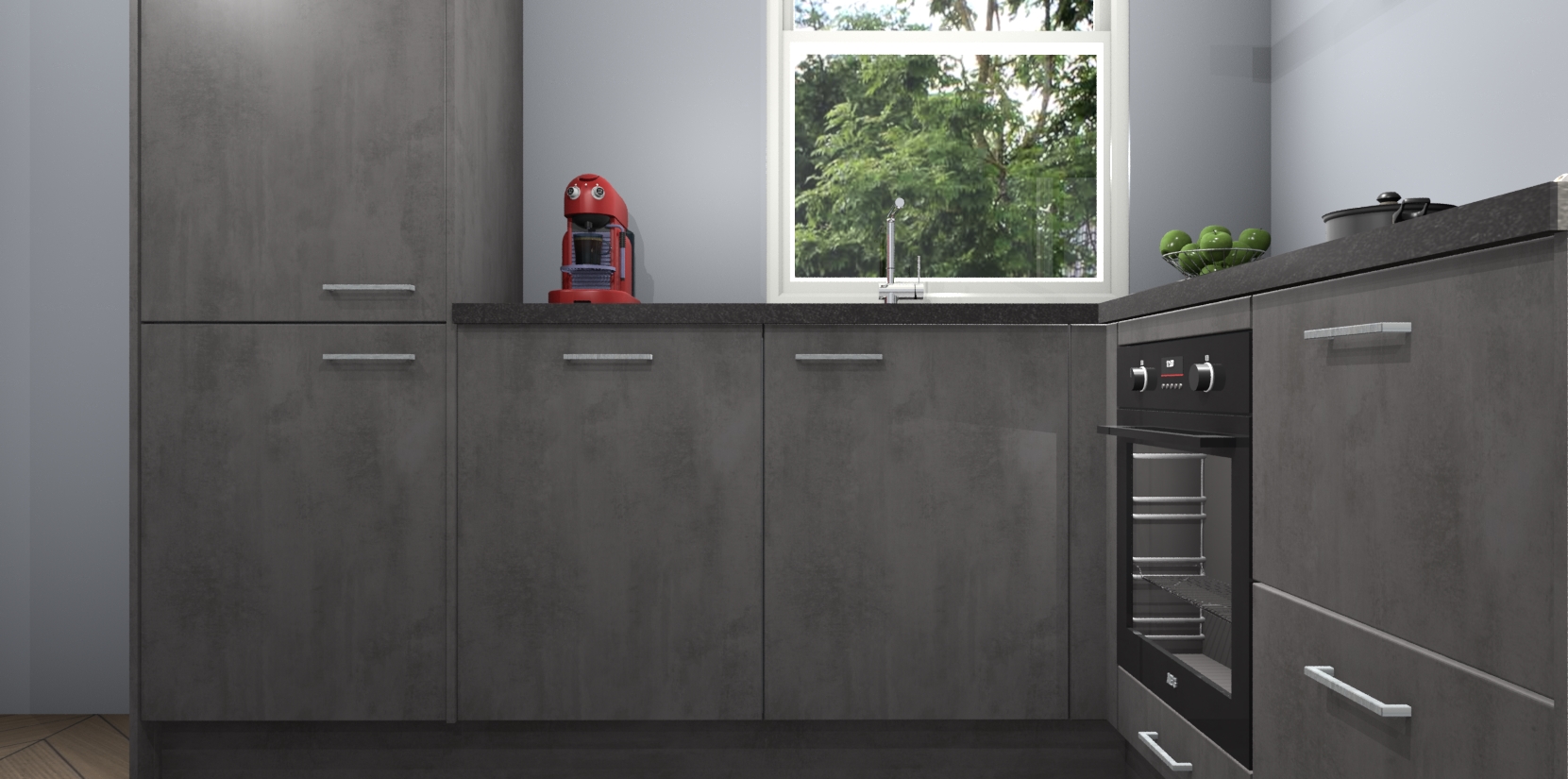 De Beton Antraciet keuken Phuket heeft alles wat u maar kunt wensen. Niet alleen zijn er softclose deuren, maar ook 5 ingebouwde apparaten: een oven, inductiekookplaat, afzuigkap, vaatwasser en koelkast - waarbij u later gemakkelijk naar het AEG merk, van inductiekookplaat naar kookplaat met geïntegreerde afzuiging of van oven naar combimagnetron kunt upgraden. Dat alles tegen een vast laag tarief! Bovendien geeft de Beton Antraciet keuken Phuket supersnelle levering van 7 weken. Echt iets voor u als u er niet op wilt wachten om het resultaat te zien in eigen keuken!