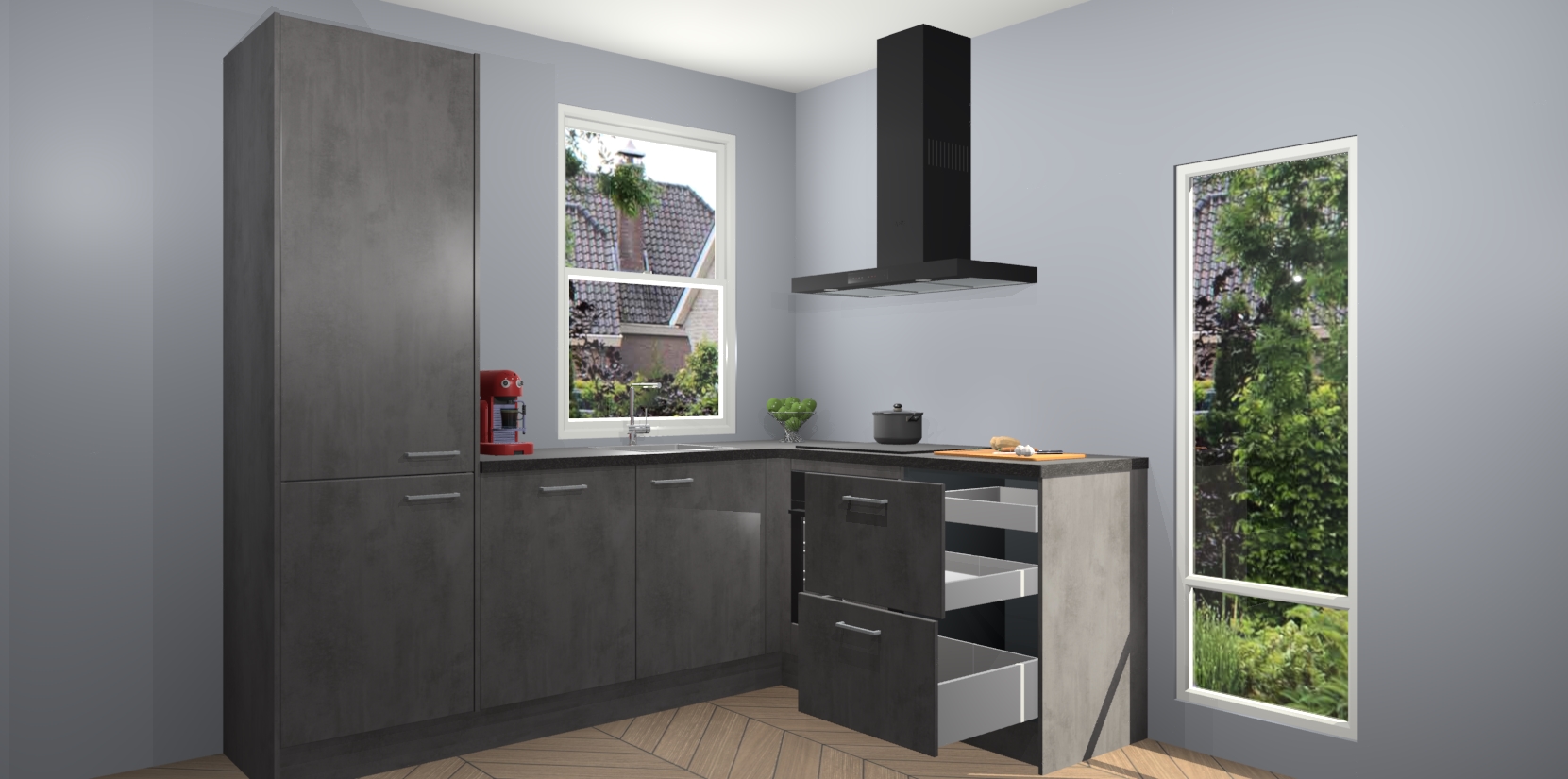 De prachtige Beton Antraciet keuken Phuket is de perfecte keuze als u op zoek bent naar een moderne hoekkeuken met alle luxe en comfort die u kunt verwachten! De uitstraling in het houtlook-design draagt bij aan de warme sfeer die u nu al voelt wanneer u er naar kijkt. Heeft u genoeg van ouderwetse keukens? Probeer dan direct deze moderne, mooie hoekkeukens en laat iedereen verbluft achter!