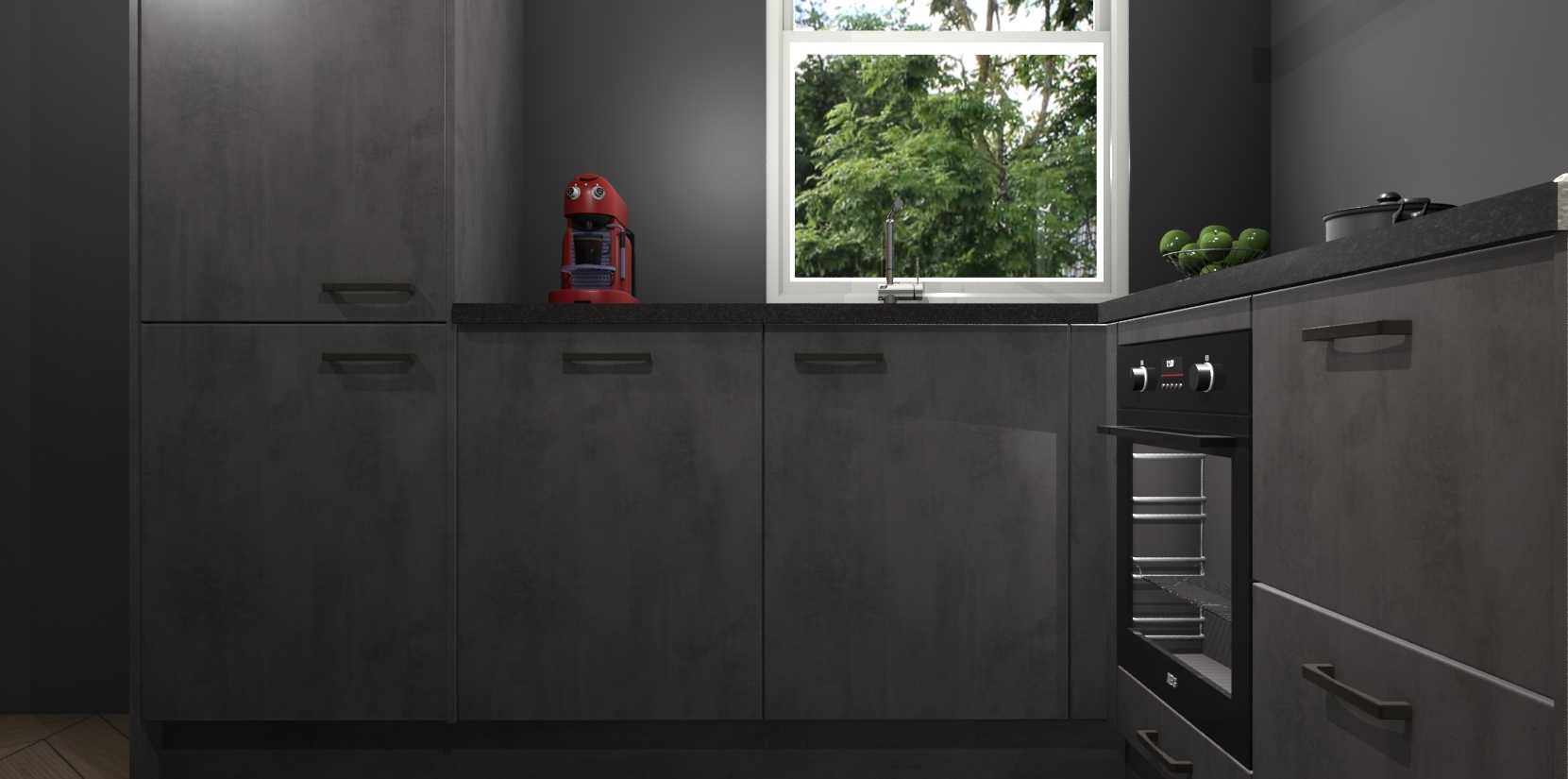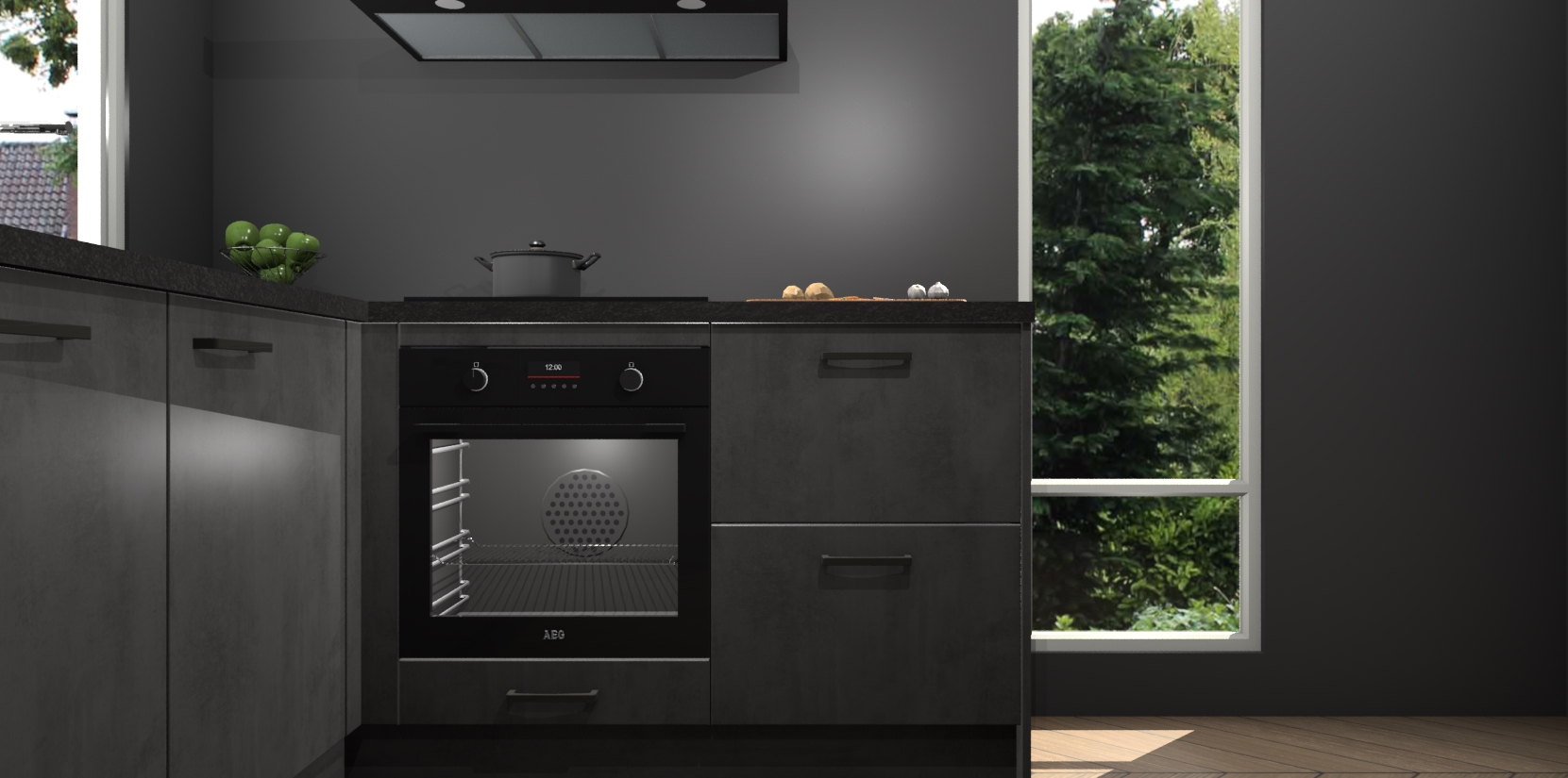 De Beton Antraciet keuken Phuket heeft alles wat u maar kunt wensen. Niet alleen zijn er softclose deuren, maar ook 5 ingebouwde apparaten: een oven, inductiekookplaat, afzuigkap, vaatwasser en koelkast - waarbij u later gemakkelijk naar het AEG merk, van inductiekookplaat naar kookplaat met geïntegreerde afzuiging of van oven naar combimagnetron kunt upgraden. Dat alles tegen een vast laag tarief! Bovendien geeft de Beton Antraciet keuken Phuket supersnelle levering van 7 weken. Echt iets voor u als u er niet op wilt wachten om het resultaat te zien in eigen keuken!
