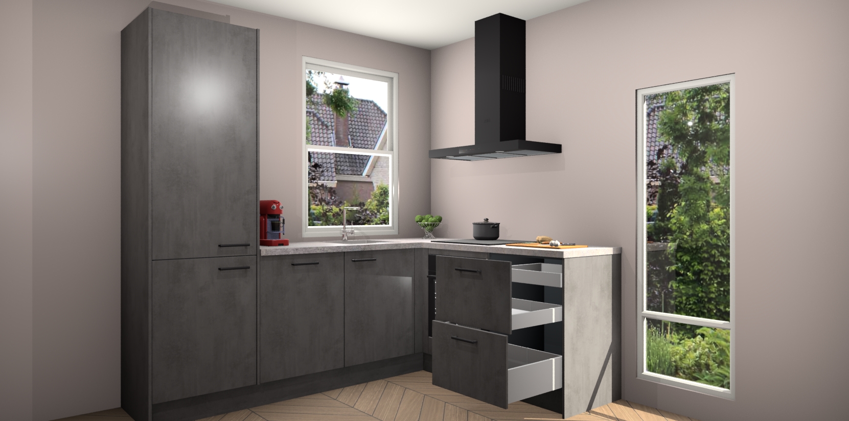 Daarbij leveren wij vijf ingebouwde apparaten mee waaronder een oven, inductiekookplaat, afzuigkap, vaatwasser en koelkast. Deze kunnen na bestelling gemakkelijk worden bijgewerkt naar AEG producten, een kookplaat met geïntegreerde afzuiging of een combimagnetron in plaats van oven. Verdiend dat niet extra? Daarnaast hoeft u nooit meer bezorgd te zijn over servicekosten of kostbare verrassing; met de beton antraciet keuken Lochem betaalt u namelijk altijd eenzelfde lage prijs!