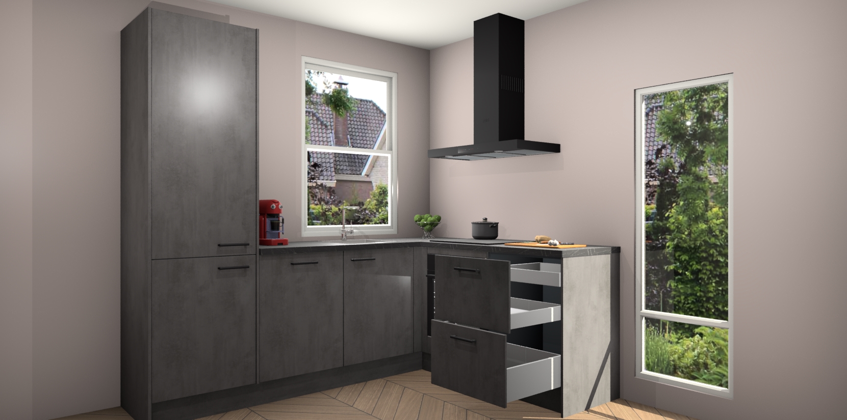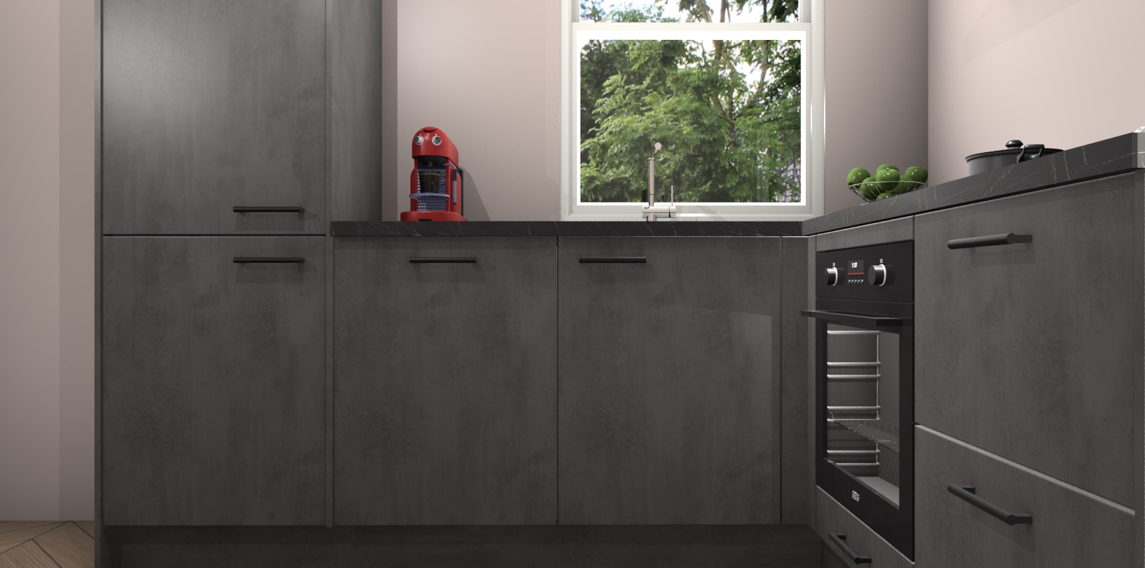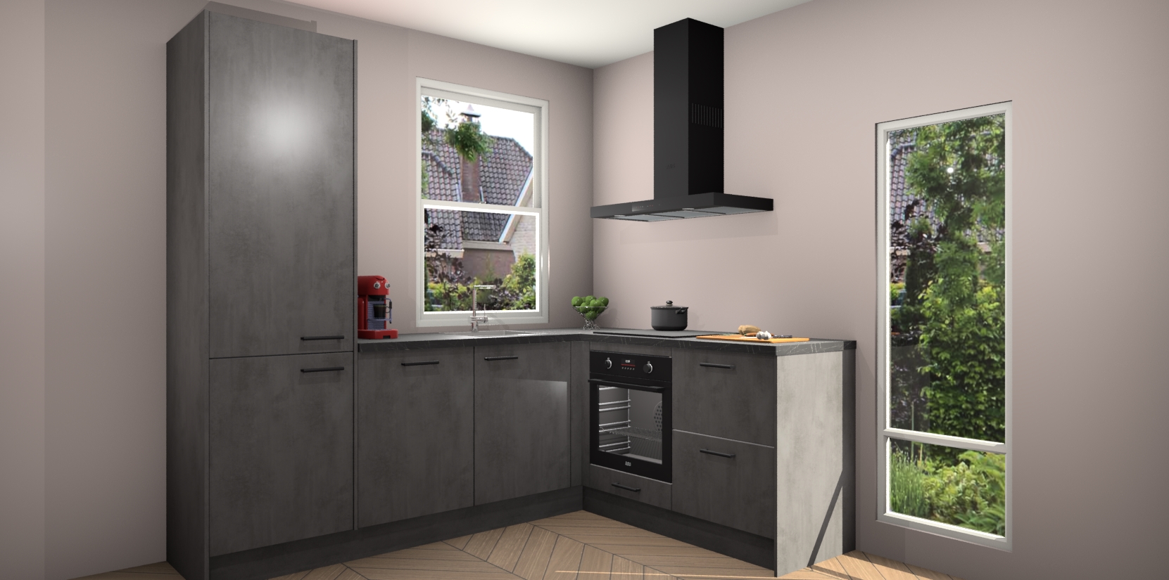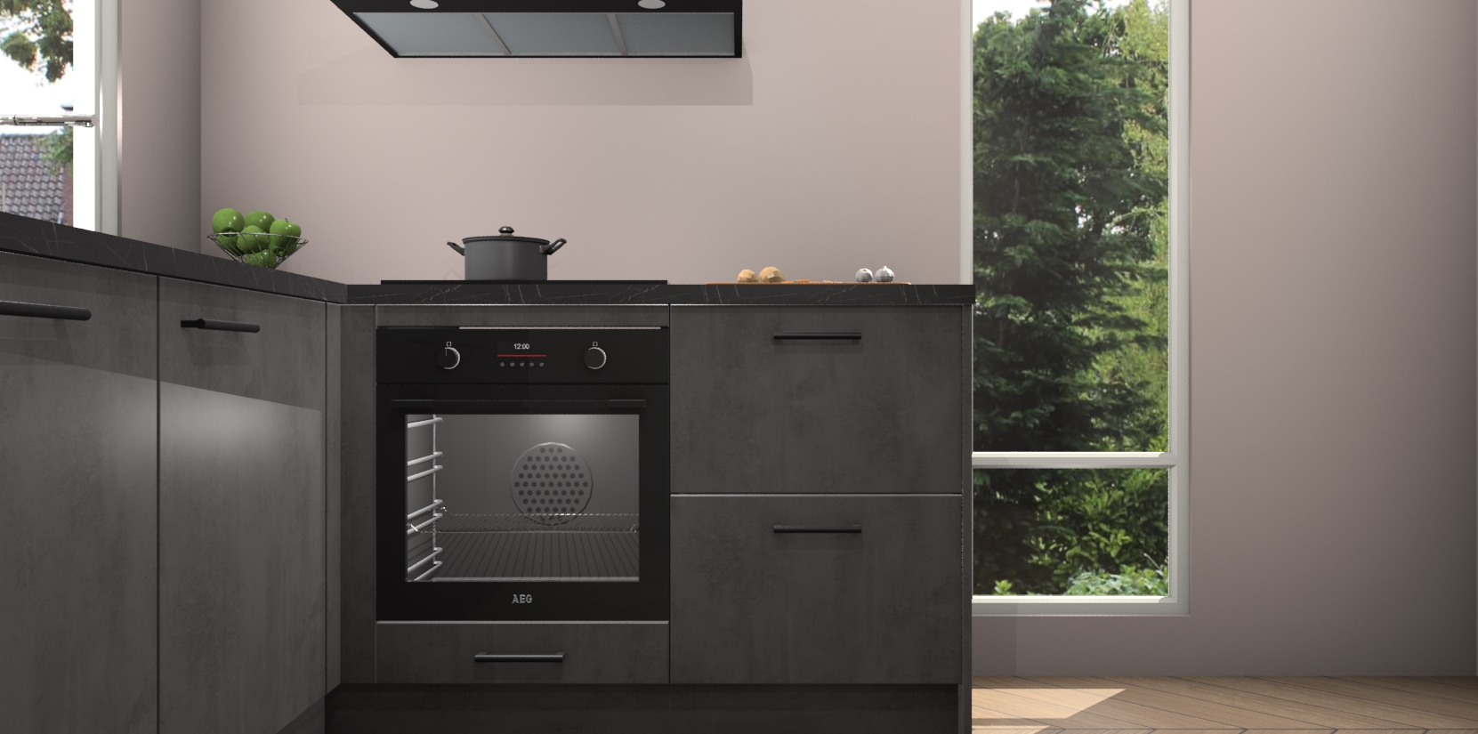 Daarbij leveren wij vijf ingebouwde apparaten mee waaronder een oven, inductiekookplaat, afzuigkap, vaatwasser en koelkast. Deze kunnen na bestelling gemakkelijk worden bijgewerkt naar AEG producten, een kookplaat met geïntegreerde afzuiging of een combimagnetron in plaats van oven. Verdiend dat niet extra? Daarnaast hoeft u nooit meer bezorgd te zijn over servicekosten of kostbare verrassing; met de beton antraciet keuken Lochem betaalt u namelijk altijd eenzelfde lage prijs!