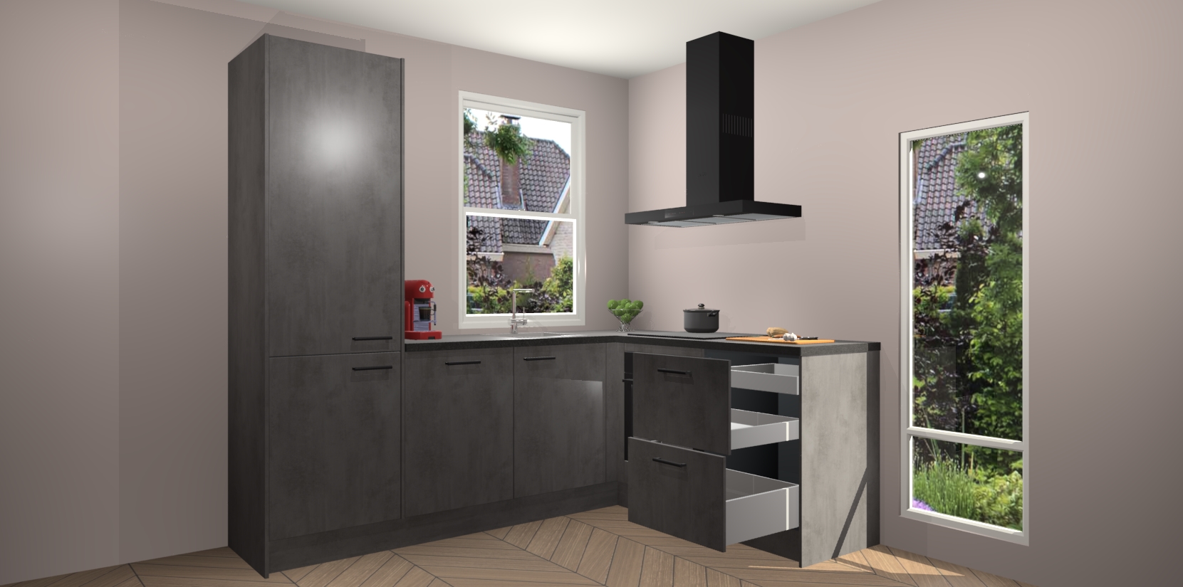 Daarbij leveren wij vijf ingebouwde apparaten mee waaronder een oven, inductiekookplaat, afzuigkap, vaatwasser en koelkast. Deze kunnen na bestelling gemakkelijk worden bijgewerkt naar AEG producten, een kookplaat met geïntegreerde afzuiging of een combimagnetron in plaats van oven. Verdiend dat niet extra? Daarnaast hoeft u nooit meer bezorgd te zijn over servicekosten of kostbare verrassing; met de beton antraciet keuken Lochem betaalt u namelijk altijd eenzelfde lage prijs!