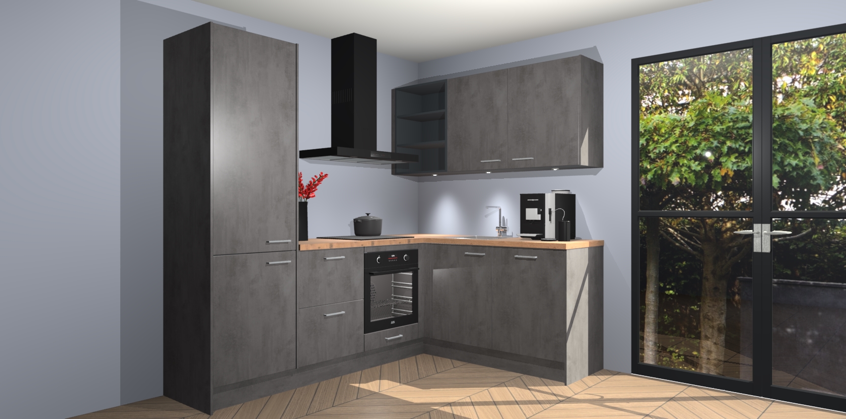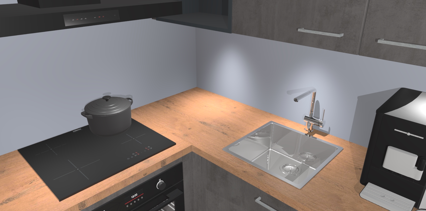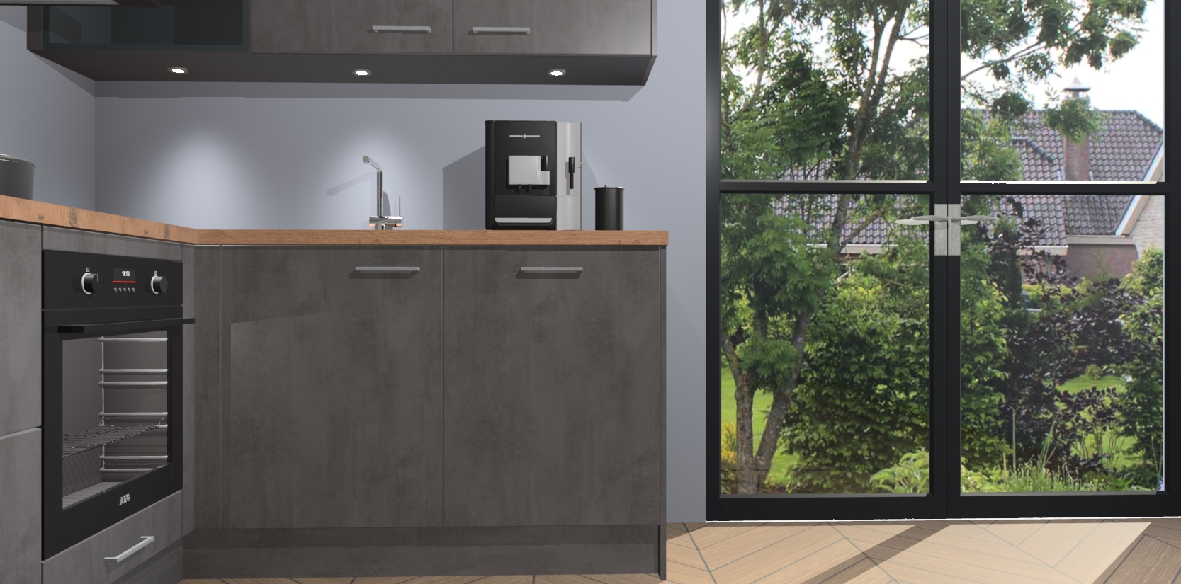 Wauw, dit is de Beton Antraciet keuken Pilsen! U kunt gerust zeggen dat u elegantie combineert met functionaliteit met deze keuken. Met een modern en chique ontwerp is de keuken precies wat u nodig heeft om uw ruimte te verfraaien. De binnenzijde van de kasten is in dezelfde donkere kleur als de buitenzijde voor een uniforme look, compleet met softclose-kasten die stil sluiten.