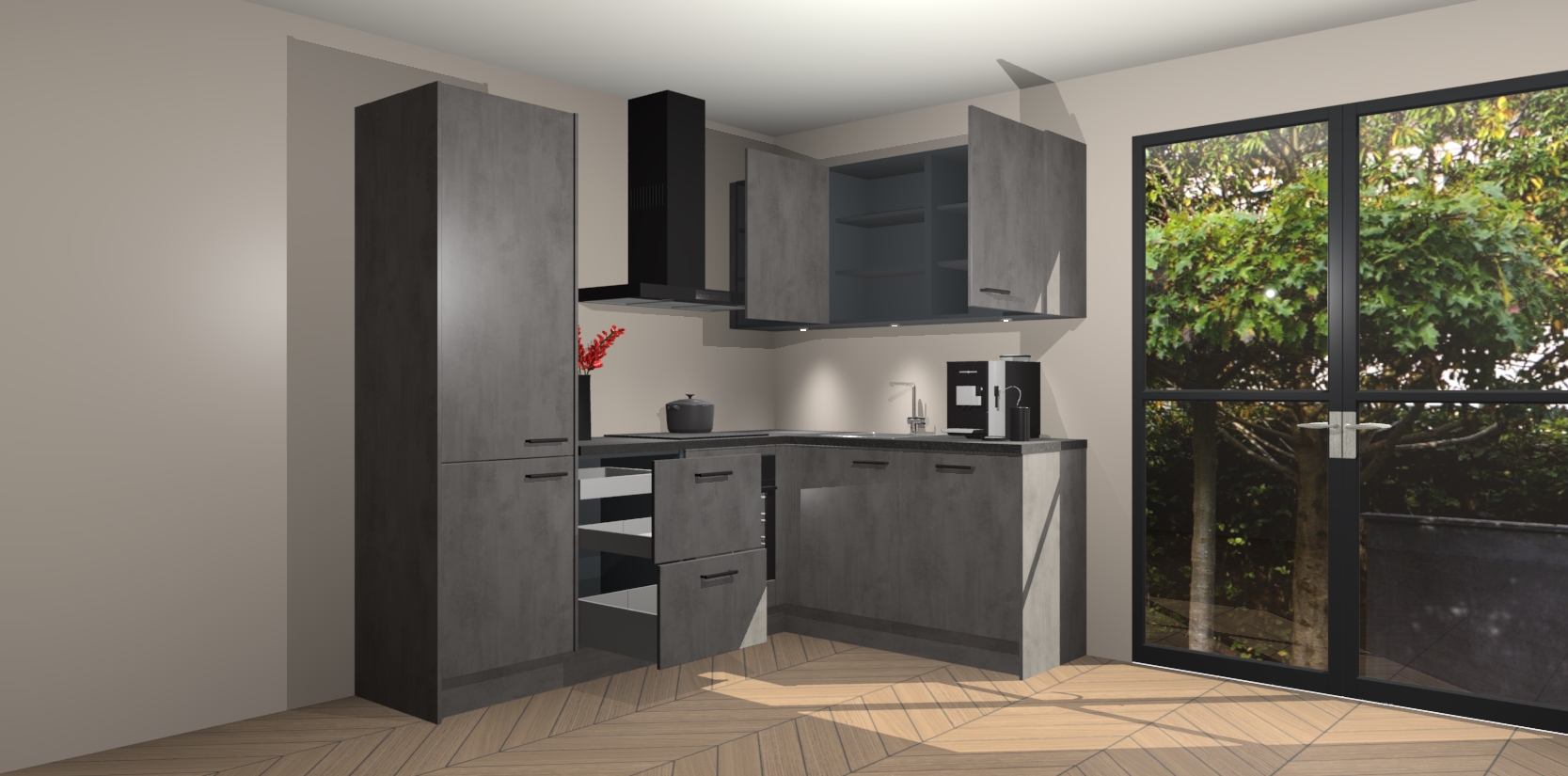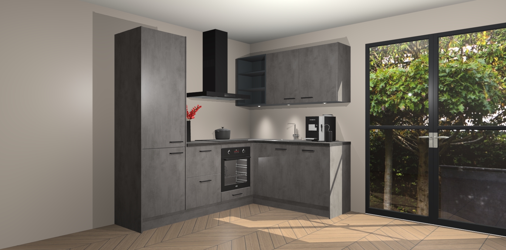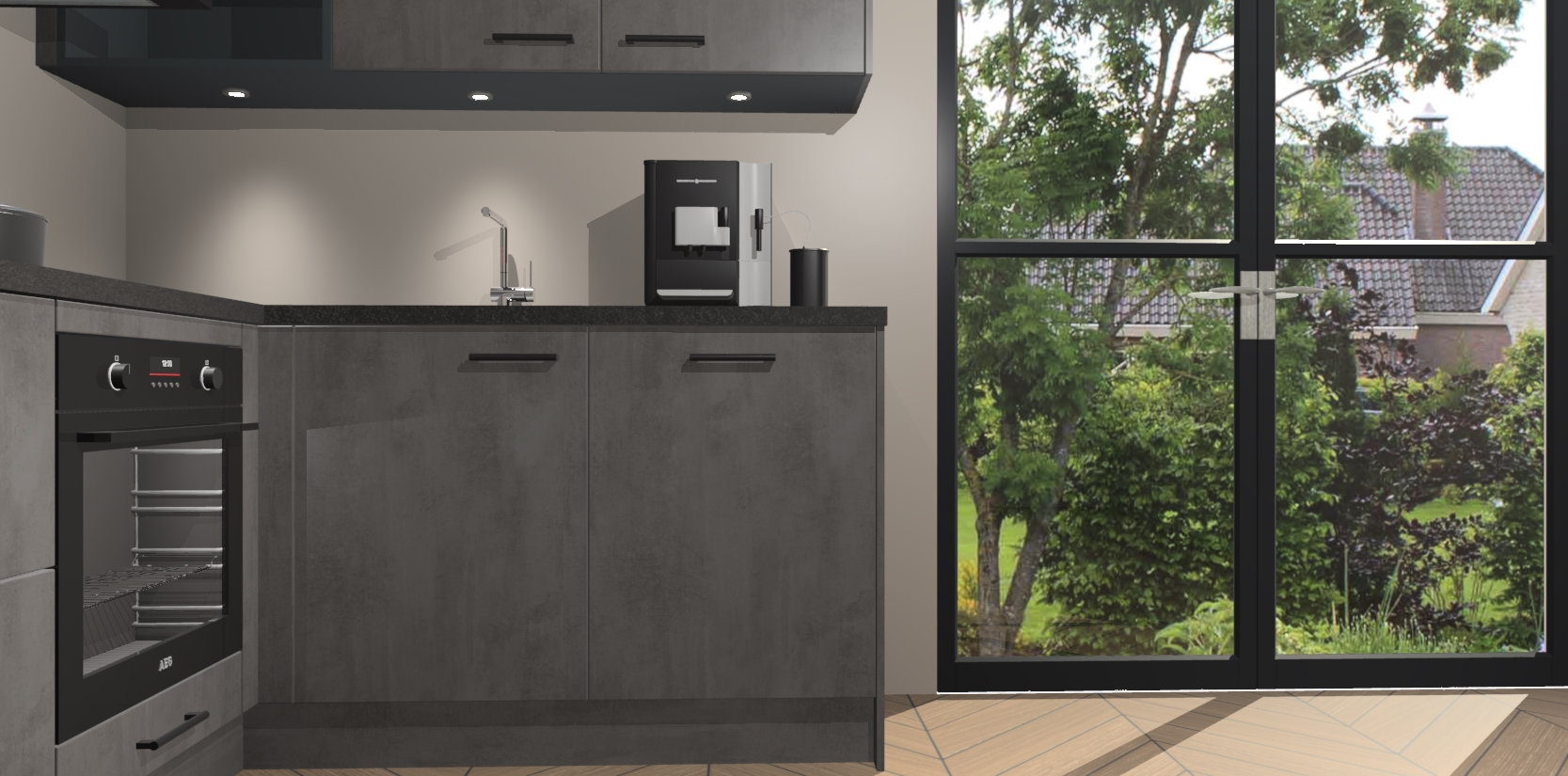 Wauw, dit is de Beton Antraciet keuken Pilsen! U kunt gerust zeggen dat u elegantie combineert met functionaliteit met deze keuken. Met een modern en chique ontwerp is de keuken precies wat u nodig heeft om uw ruimte te verfraaien. De binnenzijde van de kasten is in dezelfde donkere kleur als de buitenzijde voor een uniforme look, compleet met softclose-kasten die stil sluiten.