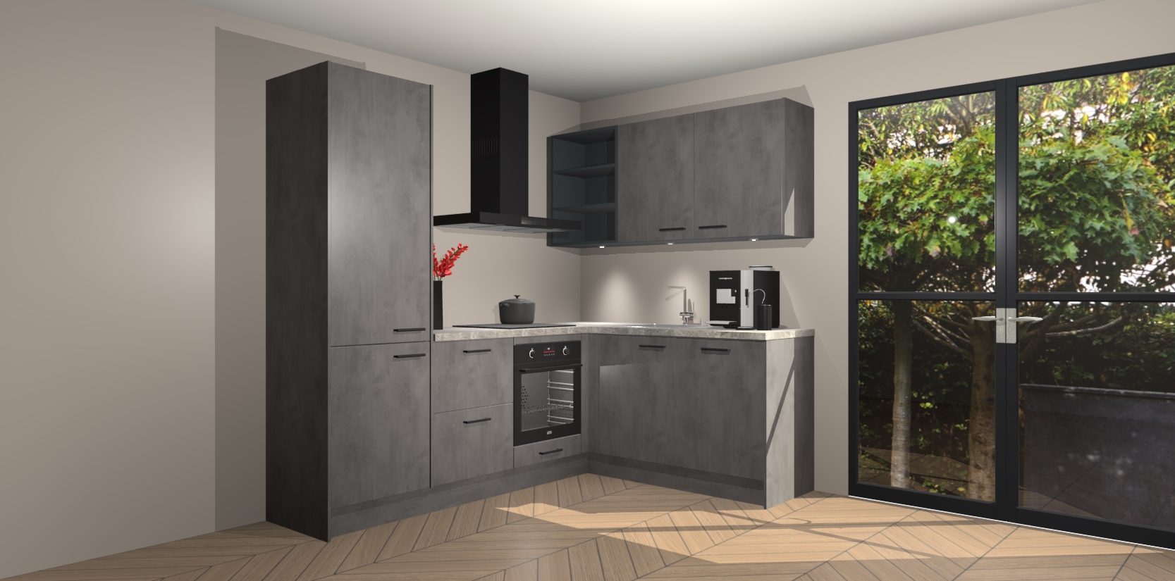 Wauw, dit is de Beton Antraciet keuken Pilsen! U kunt gerust zeggen dat u elegantie combineert met functionaliteit met deze keuken. Met een modern en chique ontwerp is de keuken precies wat u nodig heeft om uw ruimte te verfraaien. De binnenzijde van de kasten is in dezelfde donkere kleur als de buitenzijde voor een uniforme look, compleet met softclose-kasten die stil sluiten.