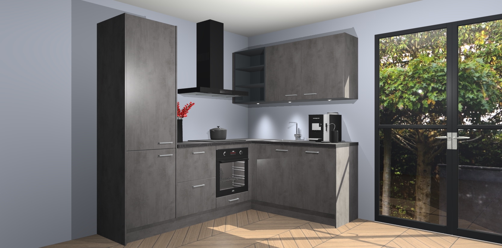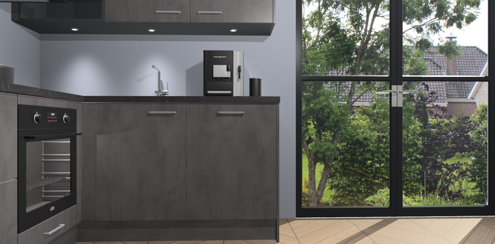 Wauw, dit is de Beton Antraciet keuken Pilsen! U kunt gerust zeggen dat u elegantie combineert met functionaliteit met deze keuken. Met een modern en chique ontwerp is de keuken precies wat u nodig heeft om uw ruimte te verfraaien. De binnenzijde van de kasten is in dezelfde donkere kleur als de buitenzijde voor een uniforme look, compleet met softclose-kasten die stil sluiten.