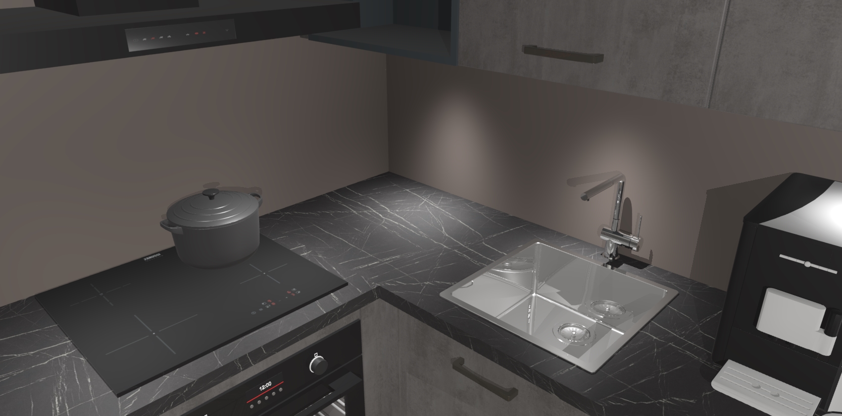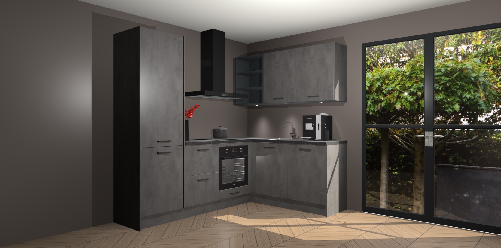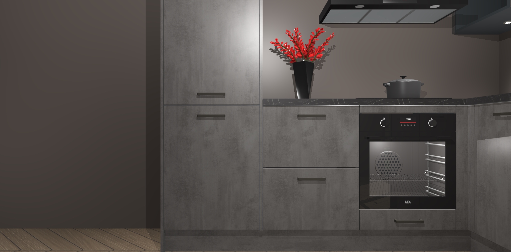 Wauw, dit is de Beton Antraciet keuken Pilsen! U kunt gerust zeggen dat u elegantie combineert met functionaliteit met deze keuken. Met een modern en chique ontwerp is de keuken precies wat u nodig heeft om uw ruimte te verfraaien. De binnenzijde van de kasten is in dezelfde donkere kleur als de buitenzijde voor een uniforme look, compleet met softclose-kasten die stil sluiten.