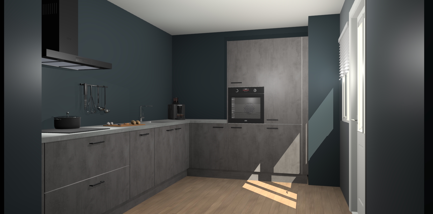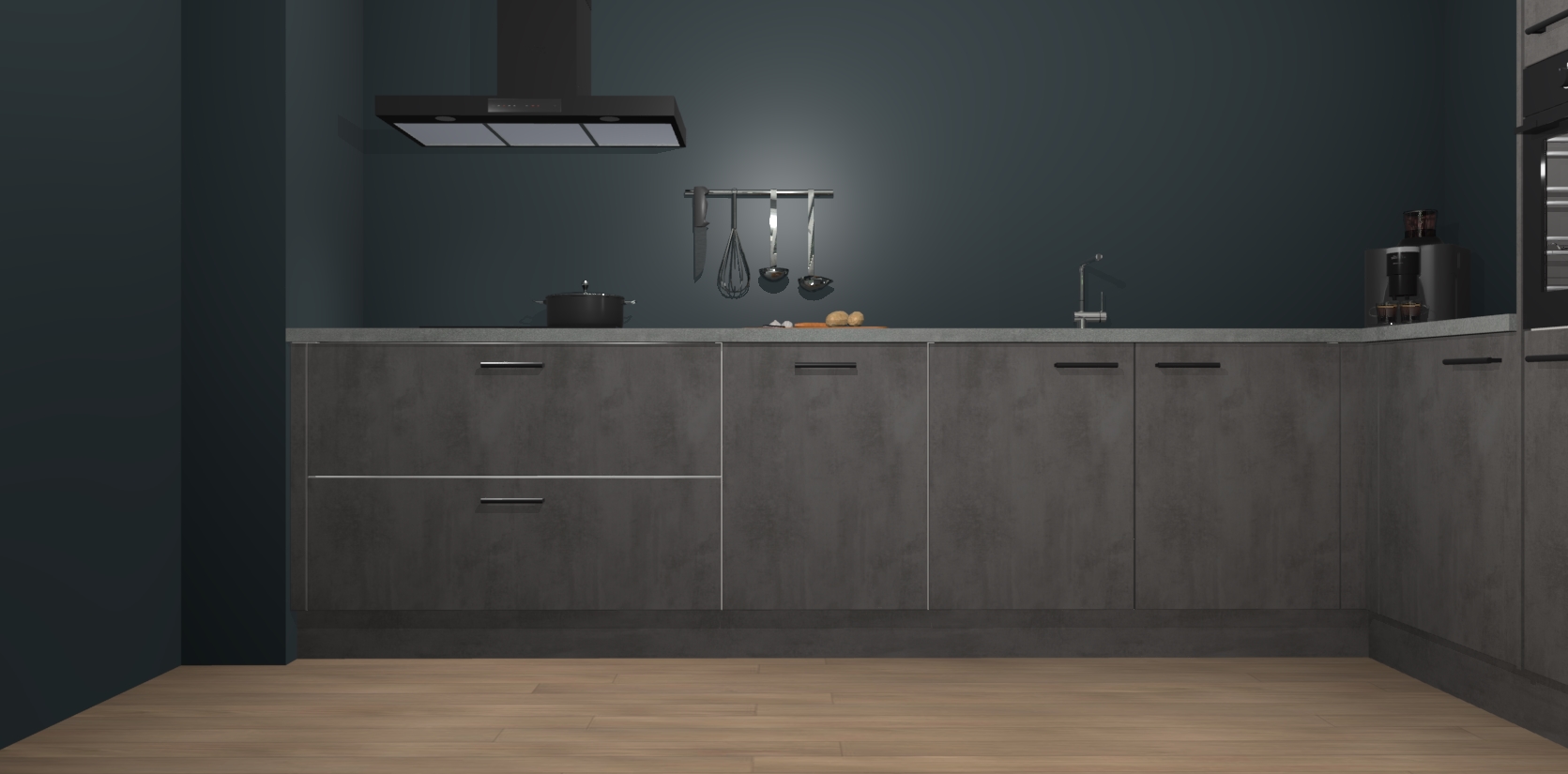 Welkom bij de Beton Antraciet keuken Portland. Deze prachtige keuken zal de komende jaren het middelpunt van de belangstelling in uw huis zijn. Uitgerust met vijf inbouwapparaten komt u nooit kookgereedschap tekort. Bovendien geeft de warme houtlook elke ruimte een uitnodigende en tijdloze uitstraling.