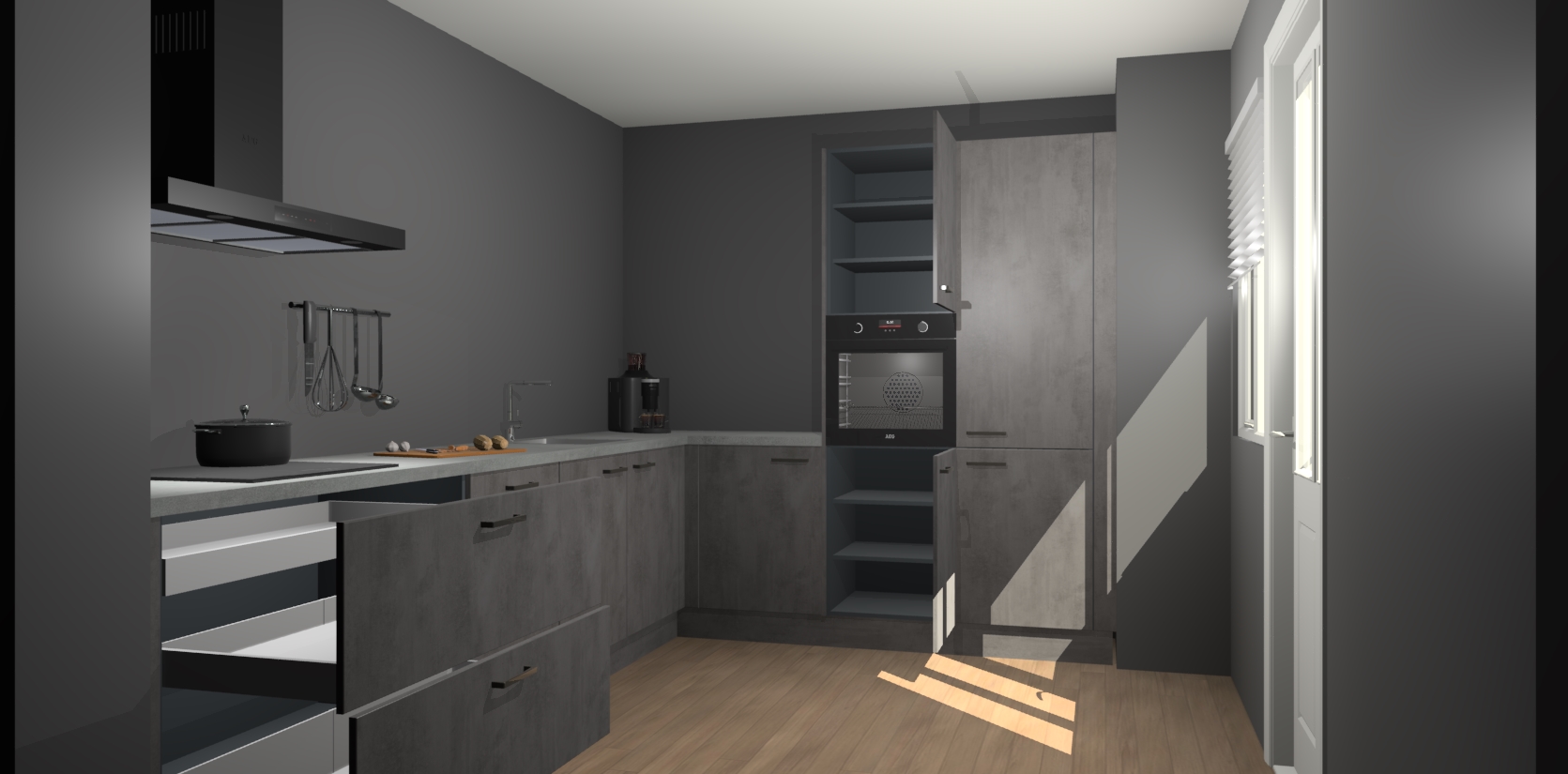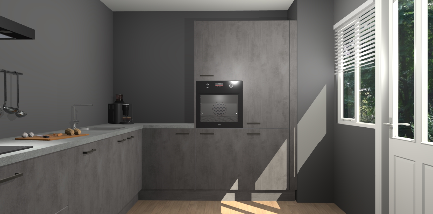 Welkom bij de Beton Antraciet keuken Portland. Deze prachtige keuken zal de komende jaren het middelpunt van de belangstelling in uw huis zijn. Uitgerust met vijf inbouwapparaten komt u nooit kookgereedschap tekort. Bovendien geeft de warme houtlook elke ruimte een uitnodigende en tijdloze uitstraling.