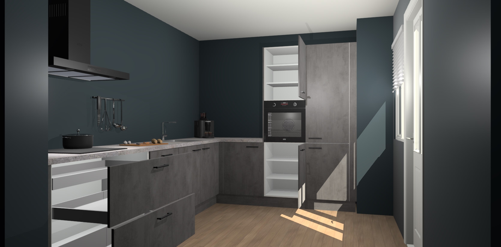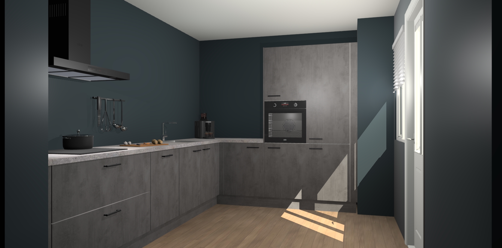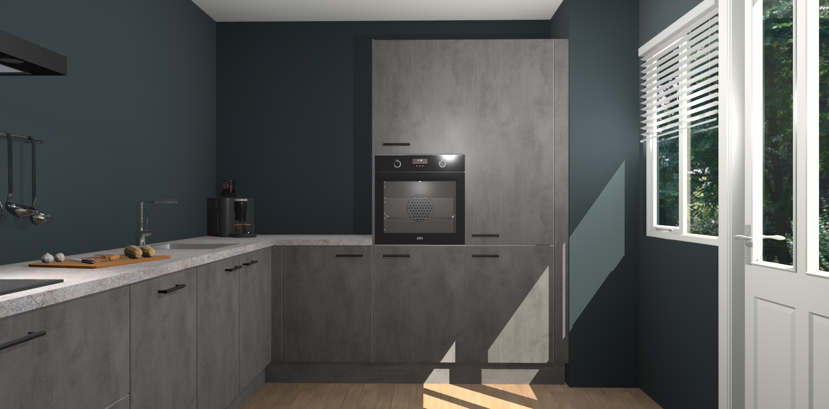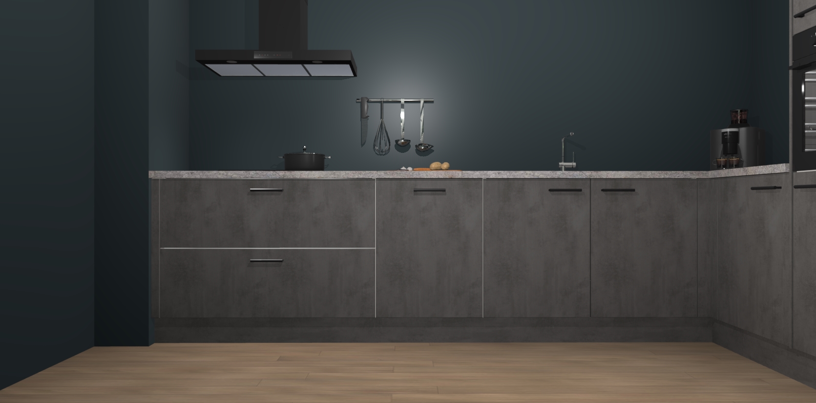 Welkom bij de Beton Antraciet keuken Portland. Deze prachtige keuken zal de komende jaren het middelpunt van de belangstelling in uw huis zijn. Uitgerust met vijf inbouwapparaten komt u nooit kookgereedschap tekort. Bovendien geeft de warme houtlook elke ruimte een uitnodigende en tijdloze uitstraling.
