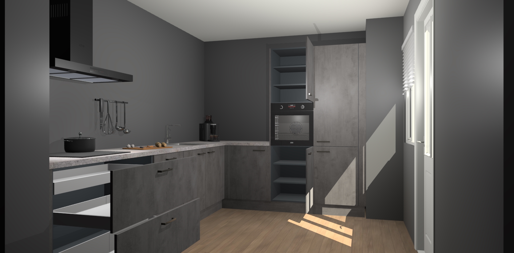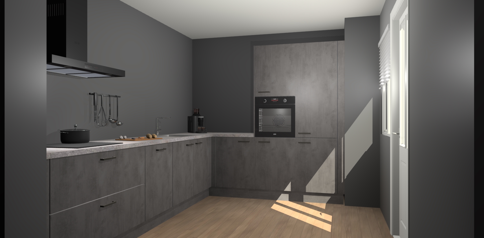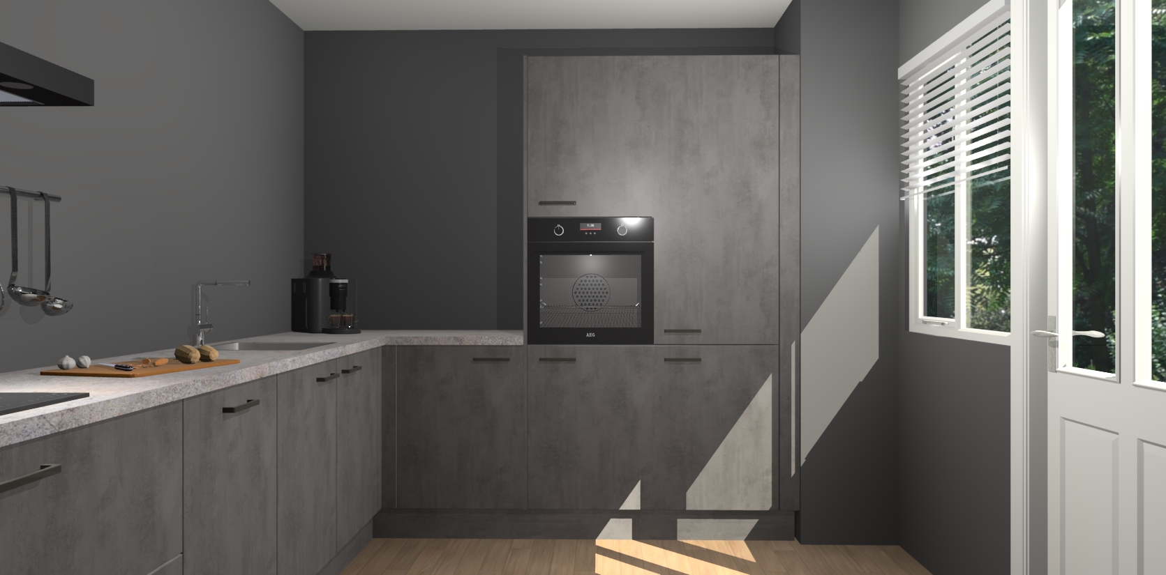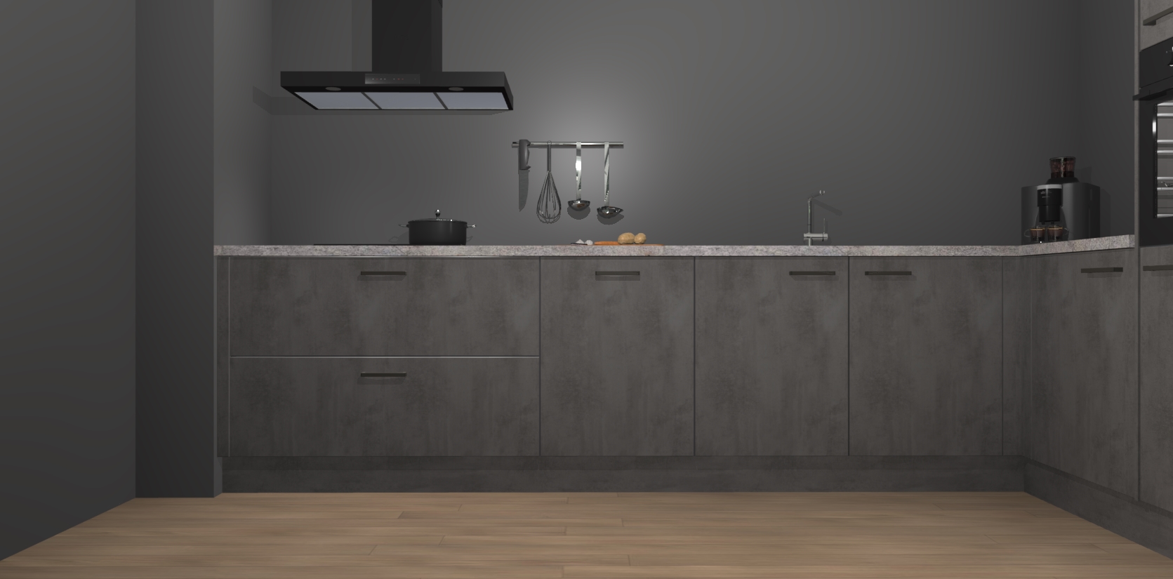 Welkom bij de Beton Antraciet keuken Portland. Deze prachtige keuken zal de komende jaren het middelpunt van de belangstelling in uw huis zijn. Uitgerust met vijf inbouwapparaten komt u nooit kookgereedschap tekort. Bovendien geeft de warme houtlook elke ruimte een uitnodigende en tijdloze uitstraling.