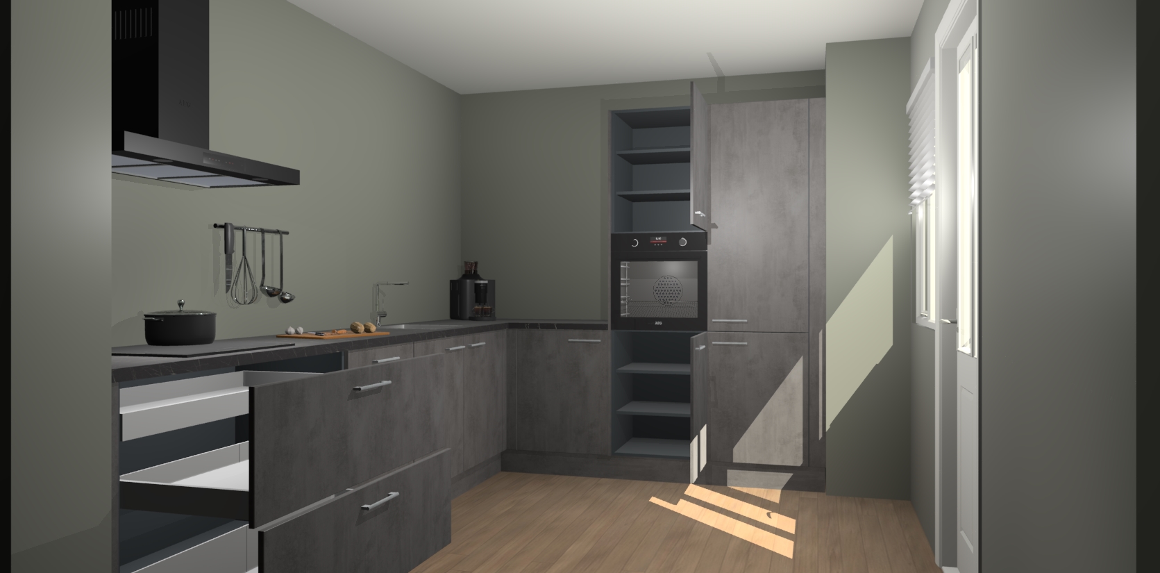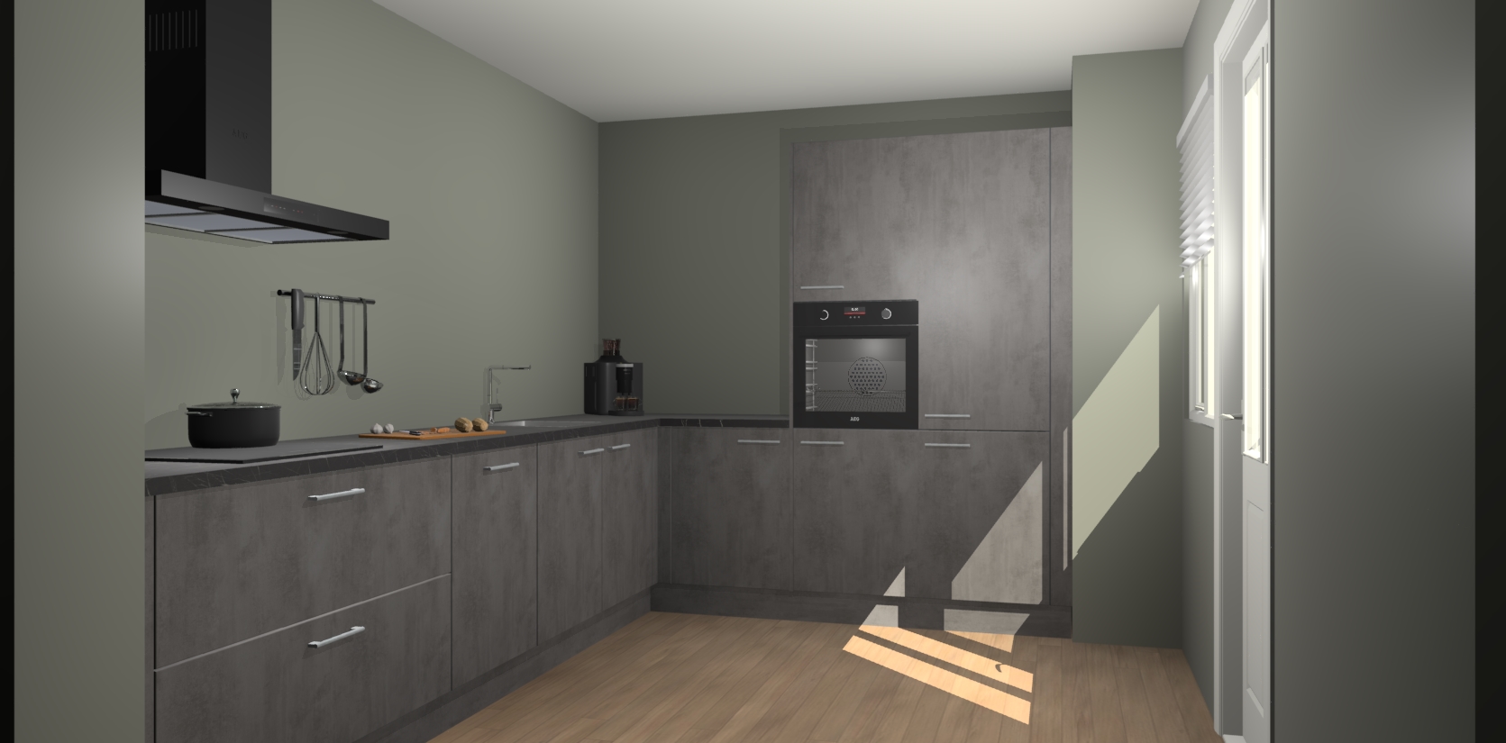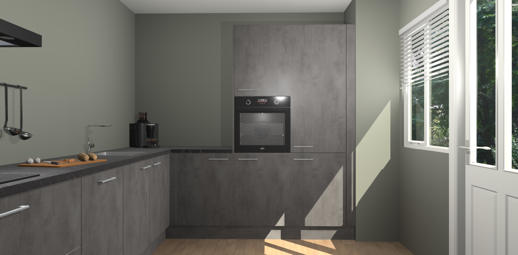 Welkom bij de Beton Antraciet keuken Portland. Deze prachtige keuken zal de komende jaren het middelpunt van de belangstelling in uw huis zijn. Uitgerust met vijf inbouwapparaten komt u nooit kookgereedschap tekort. Bovendien geeft de warme houtlook elke ruimte een uitnodigende en tijdloze uitstraling.