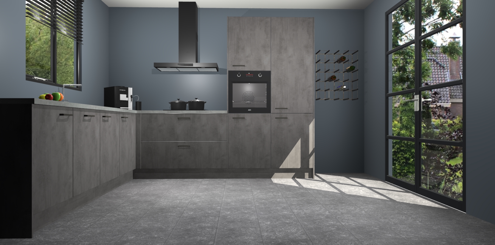 De Beton Antraciet keuken Porto heeft 5 ingebouwde apparaten - een oven, inductiekookplaat, afzuigkap, vaatwasser en koelkast - waarmee u in een handomdraai heerlijke gerechten bereidt. Soft-close deuren zorgen voor nog meer functionaliteit en gemak. En dit alles voor een onverslaanbaar vaste prijs. En als u nu bestelt, duurt de levering maar 7 weken! Wat nog ongelooflijker is, is dat onze kasten voor gemonteerd worden geleverd.