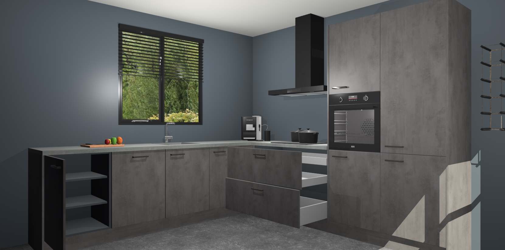 Nederlandse keukens worden niet comfortabeler dan de Beton Antraciet keuken Porto! Deze prachtige en unieke keuken straalt sfeer uit en biedt tegelijkertijd praktische opbergoplossingen. Of u nu een meester-kok bent of een culinaire amateur, dit is de ideale keuze voor u! Deze keuken is ideaal voor grote gezinnen, huizen met veel gasten - of iedereen die graag thuis is - en heeft genoeg functies om uw gezin te voeden.