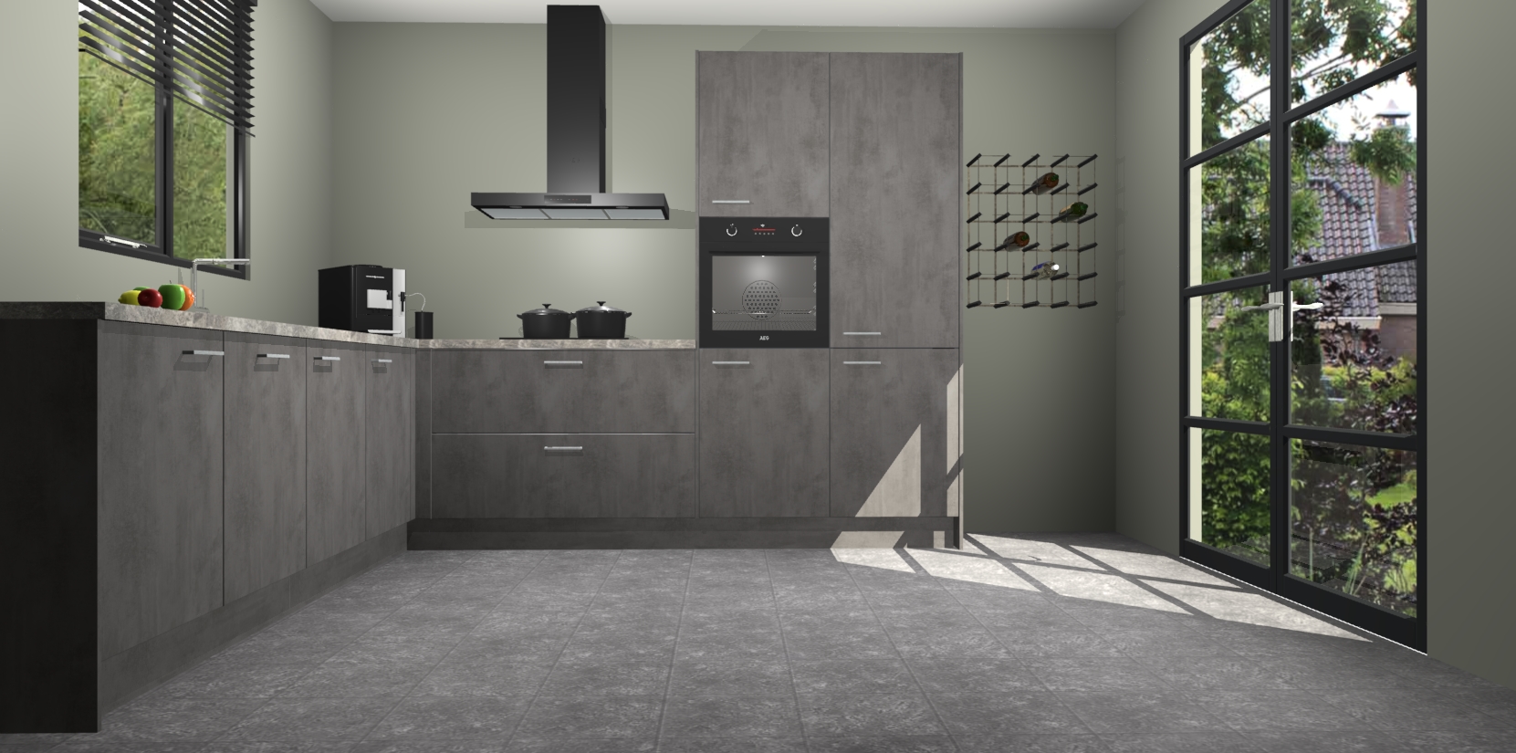 De Beton Antraciet keuken Porto heeft 5 ingebouwde apparaten - een oven, inductiekookplaat, afzuigkap, vaatwasser en koelkast - waarmee u in een handomdraai heerlijke gerechten bereidt. Soft-close deuren zorgen voor nog meer functionaliteit en gemak. En dit alles voor een onverslaanbaar vaste prijs. En als u nu bestelt, duurt de levering maar 7 weken! Wat nog ongelooflijker is, is dat onze kasten voor gemonteerd worden geleverd.