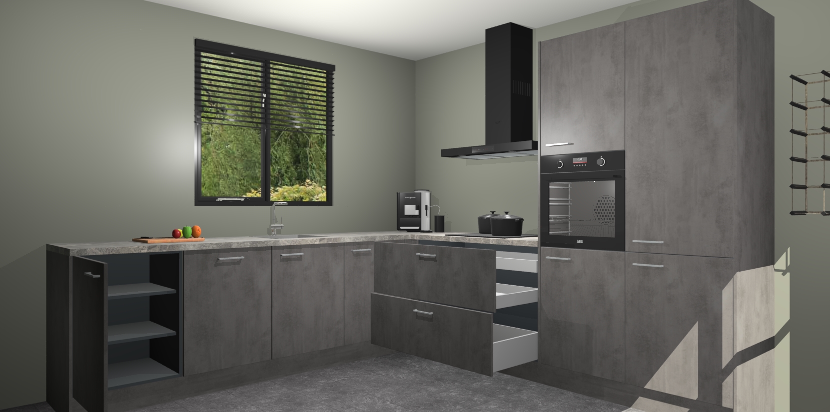 Nederlandse keukens worden niet comfortabeler dan de Beton Antraciet keuken Porto! Deze prachtige en unieke keuken straalt sfeer uit en biedt tegelijkertijd praktische opbergoplossingen. Of u nu een meester-kok bent of een culinaire amateur, dit is de ideale keuze voor u! Deze keuken is ideaal voor grote gezinnen, huizen met veel gasten - of iedereen die graag thuis is - en heeft genoeg functies om uw gezin te voeden.