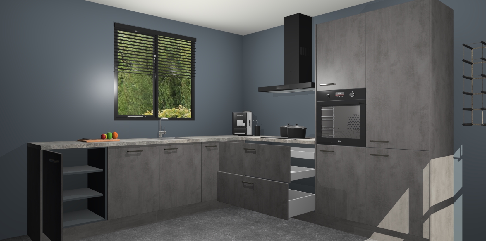 De Beton Antraciet keuken Porto heeft 5 ingebouwde apparaten - een oven, inductiekookplaat, afzuigkap, vaatwasser en koelkast - waarmee u in een handomdraai heerlijke gerechten bereidt. Soft-close deuren zorgen voor nog meer functionaliteit en gemak. En dit alles voor een onverslaanbaar vaste prijs. En als u nu bestelt, duurt de levering maar 7 weken! Wat nog ongelooflijker is, is dat onze kasten voor gemonteerd worden geleverd.