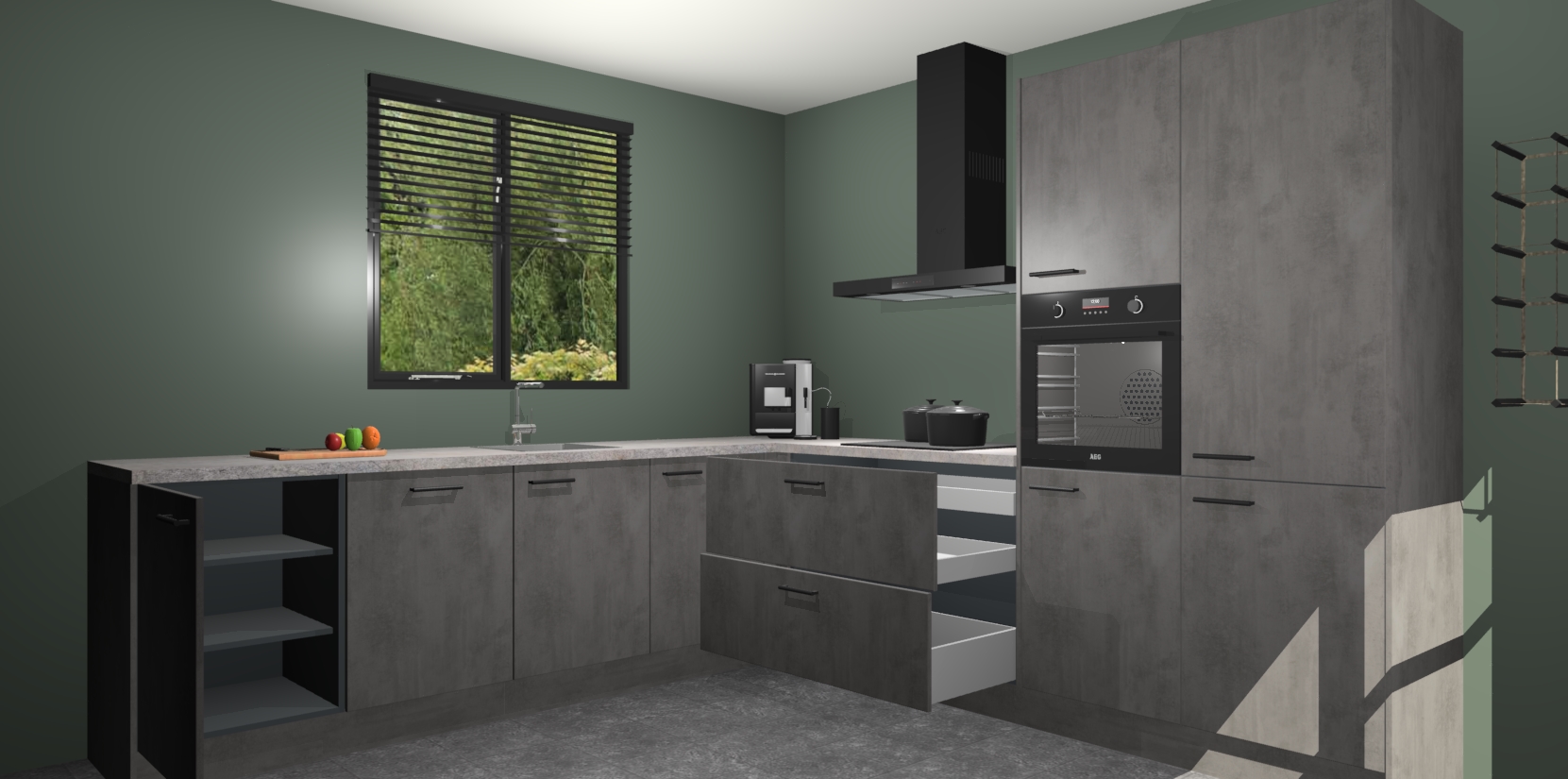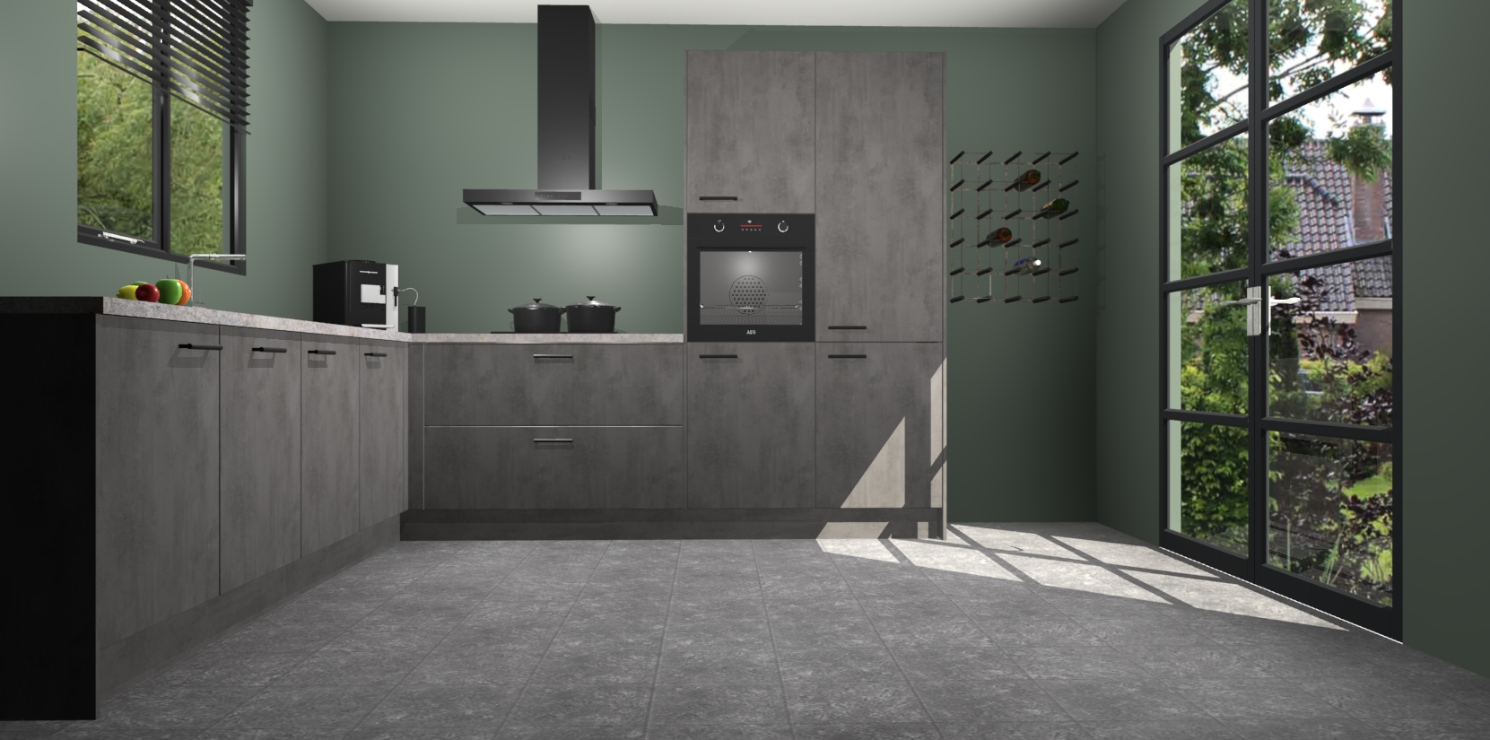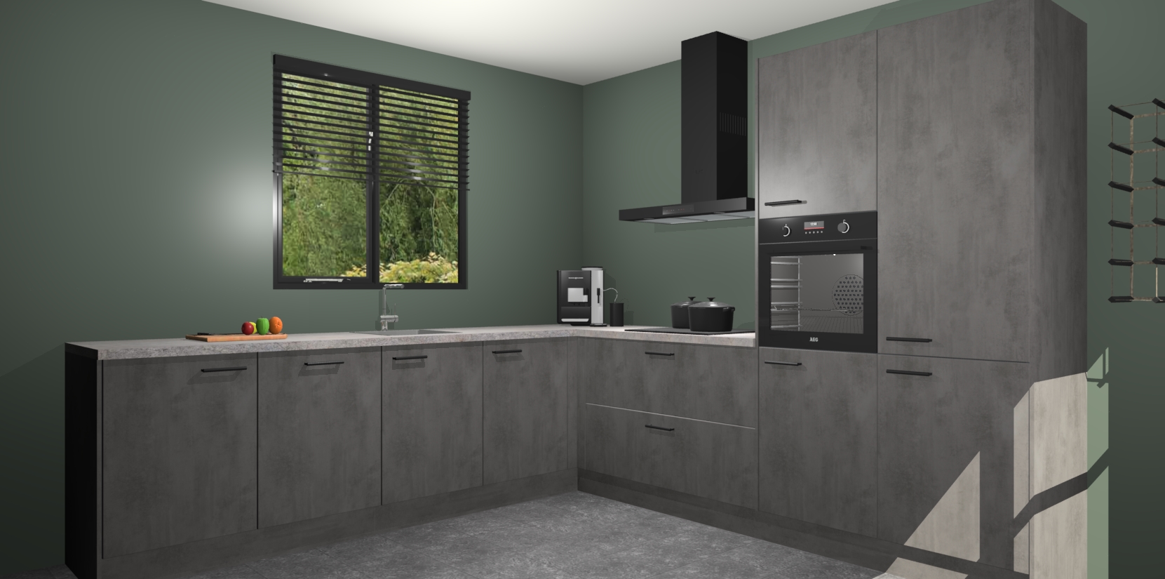 De Beton Antraciet keuken Porto heeft 5 ingebouwde apparaten - een oven, inductiekookplaat, afzuigkap, vaatwasser en koelkast - waarmee u in een handomdraai heerlijke gerechten bereidt. Soft-close deuren zorgen voor nog meer functionaliteit en gemak. En dit alles voor een onverslaanbaar vaste prijs. En als u nu bestelt, duurt de levering maar 7 weken! Wat nog ongelooflijker is, is dat onze kasten voor gemonteerd worden geleverd.